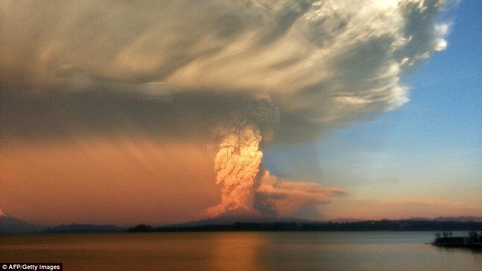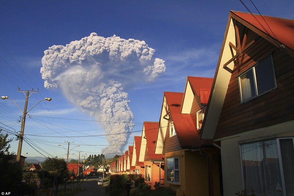 Đám mây hình nấm khổng lồ mang theo tro bụi bao trùm khu vực phía nam Chile. Vành đai lửa Thái Bình Dương với chiều dài 40.000 km, gồm các dải núi lửa và đường đứt gãy, đi qua Chile . Ảnh: Reuters
