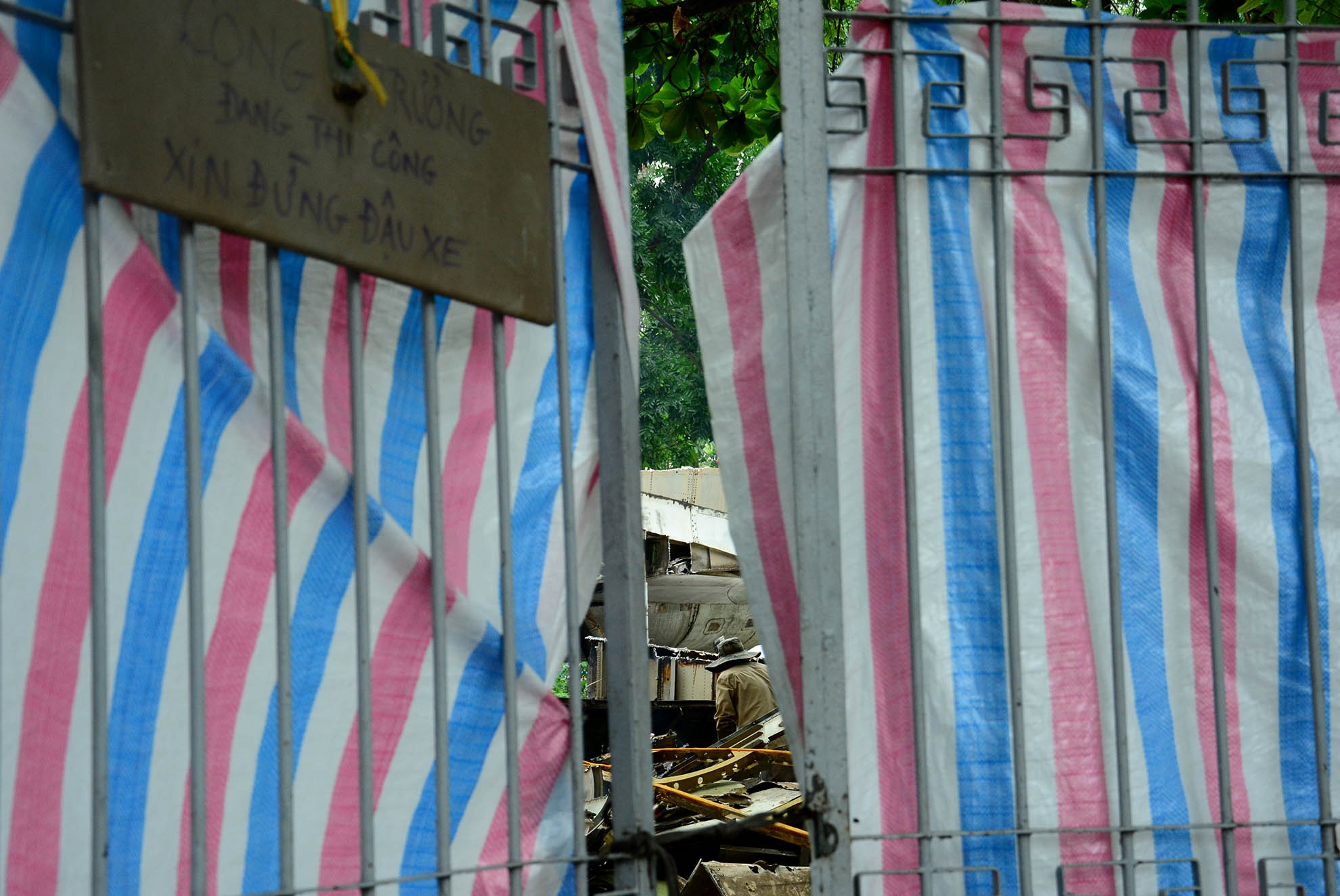 | Công trường được che kín bằng những tấm bạt bao quanh. Những người bán nước tại khu vực này cho biết, mấy chục năm qua, nhiều người tới nhìn, chụp ảnh máy bay, đặc biệt là trẻ em và thanh niên. Mặc dù đơn vị thi công che kín công trường, nhưng hàng ngày vẫn có nhiều người leo tường xem cảnh "hóa kiếp" chiếc Boeing. |