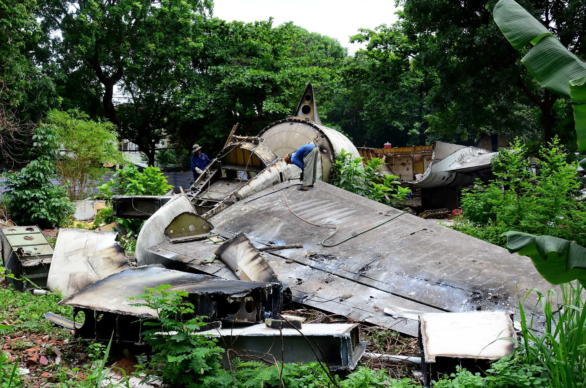 | Hơn 30 năm phơi mình giữa nắng mưa, máy bay Boeing 707 số hiệu VN 304 đang được "hóa kiếp". Sau một tuần thi công, đến sáng 18/6, nhóm công nhân đã "xẻ thịt" xong 1/2 máy bay, hàng trăm tấm kim loại nằm ngổn ngang trên công trường. Phần cánh và lưng của Boeing 707 được các người thợ bóc tách đầu tiên. |