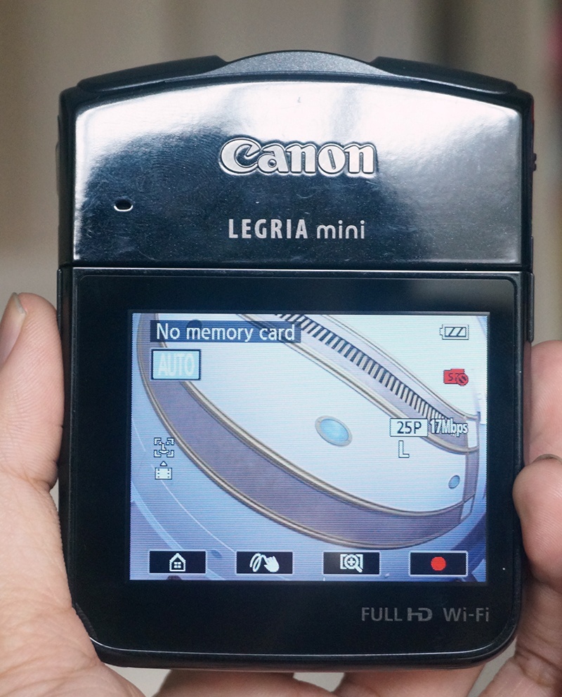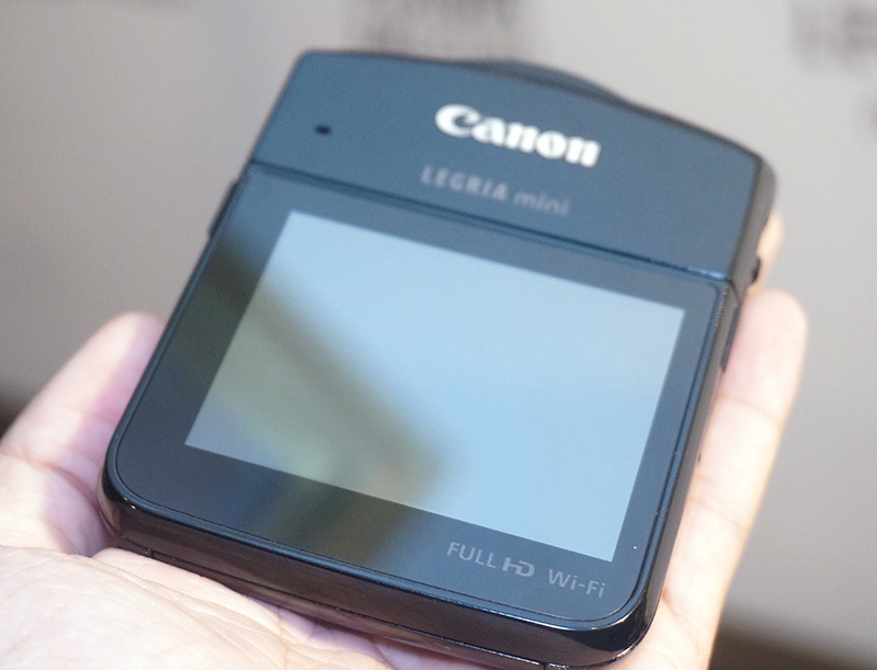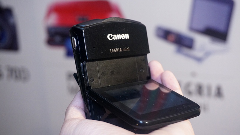 | Legria Mini có kích thước chỉ tương đương một chiếc BlackBerry, gồm một camera và một màn hình có thể lật. |