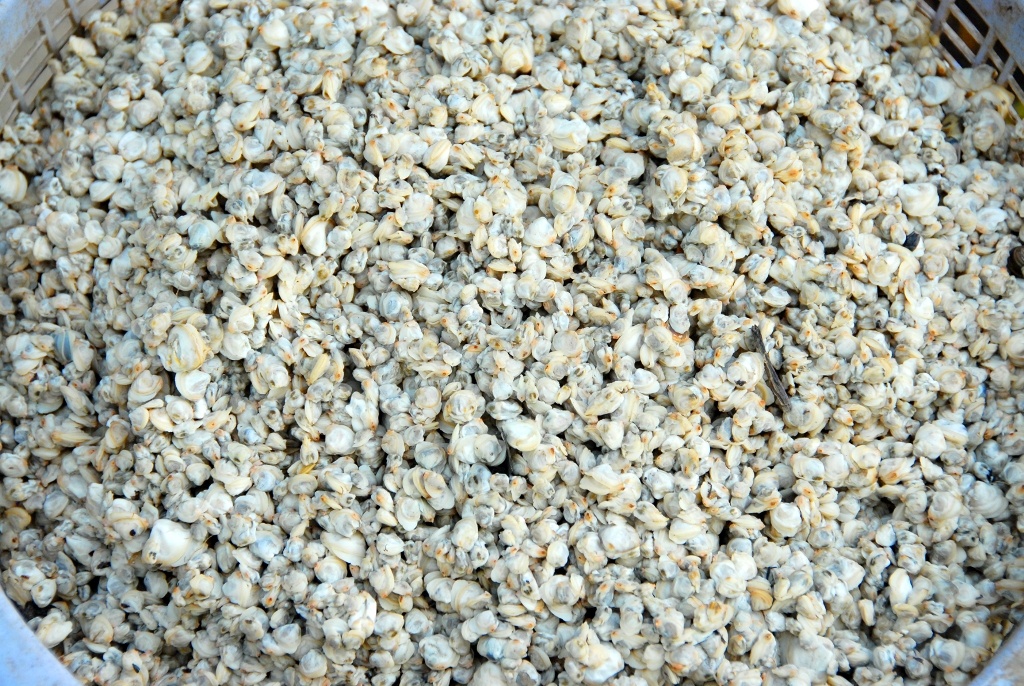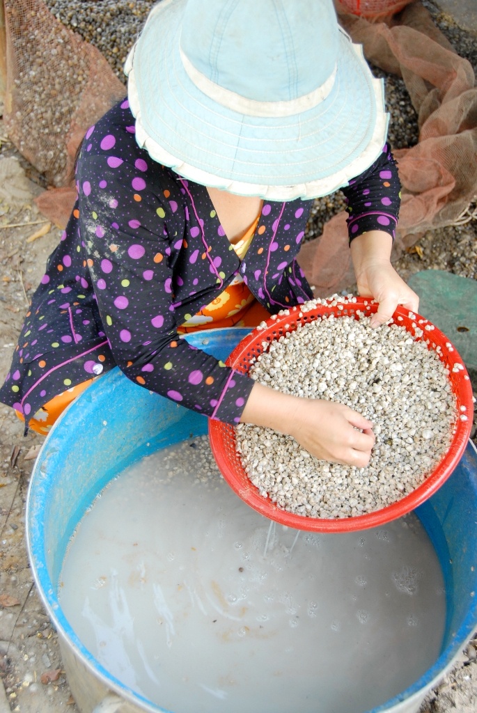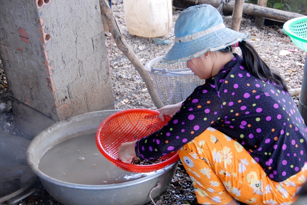 Sau đó, hến được rửa qua vài lần lước để loại bỏ bùn đất còn sót lại rồi đem luộc, để đãi lấy ruột.