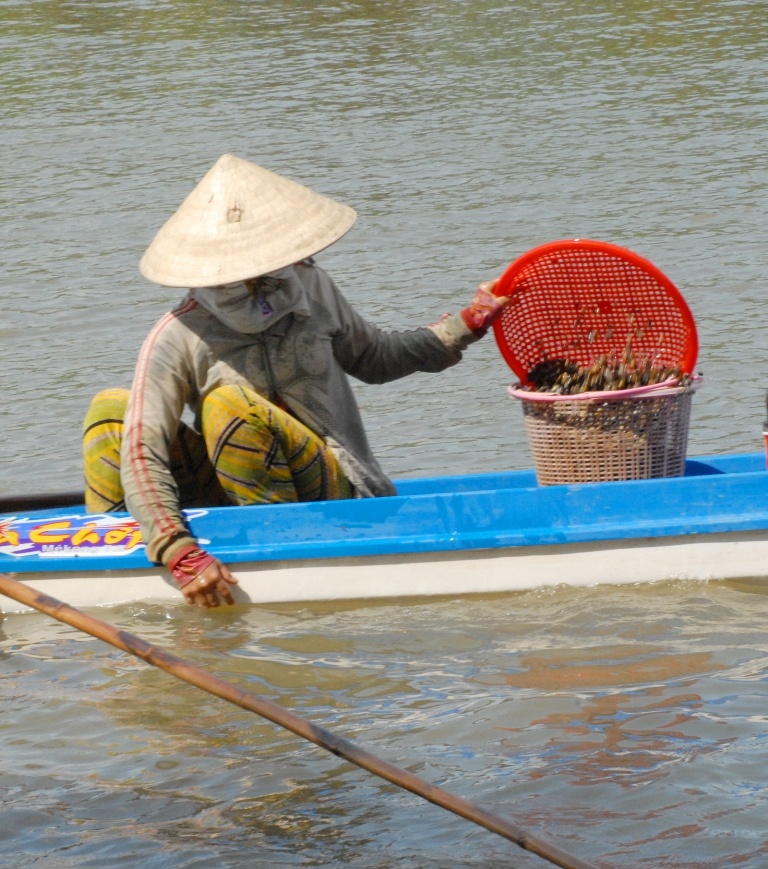 Những ngày này, ở các tuyến kênh, sông lớn thuộc An Giang như kênh 5, cầu sắt 13 (huyện Châu Thành) kênh Đào (huyện Thoại Sơn), kênh Hòa Hảo (Chợ Mới) và tuyến kênh Vĩnh Thạnh (Cần Thơ), hàng chục chiếc xuồng đậu san sát nhau hì hục cào, lựa hến. Theo người dân miền Tây, năm nay, hến về nhiều. Ngày nào thuyền đuôi tôm cũng lũ lượt chở người dọc các kênh mương để cào bới hến. Dụng cụ đánh bắt hến rất đơn giản, chỉ là cây sào dài 8m, đầu sào gắn liền với một bàn cào lưỡi sắt rộng 0,2m dài 0,5m và một cái vợt lưới sâu khoảng 1m.