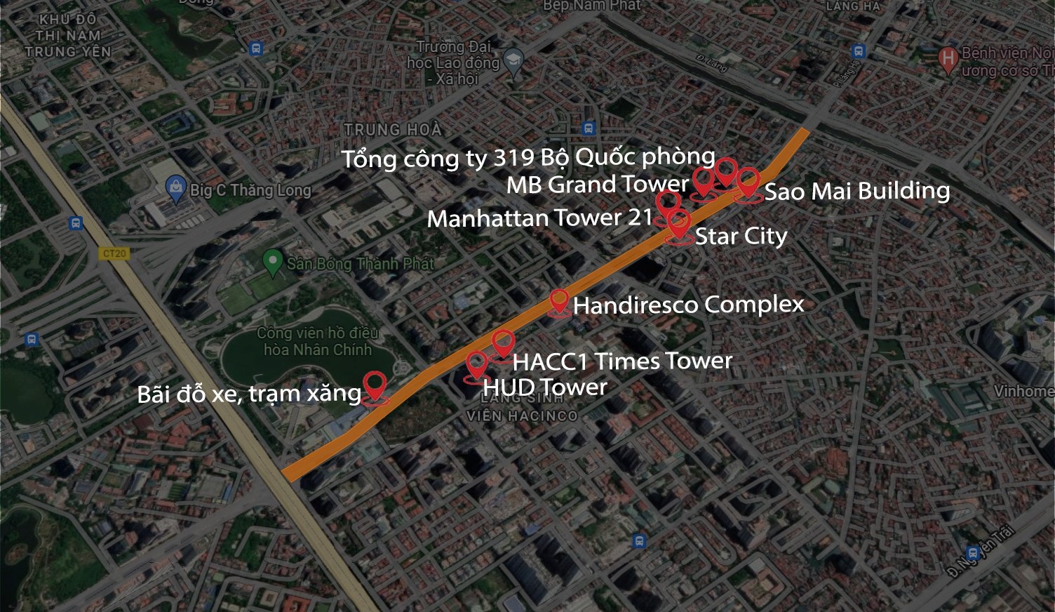 40 chung cư, nhà cao tầng tồn tại trên trục đường chỉ dài 2 km là con số thường được nhắc đến khi nói về trục đường Lê Văn Lương, nằm trên địa bàn hai quận Thanh Xuân và Cầu Giấy.