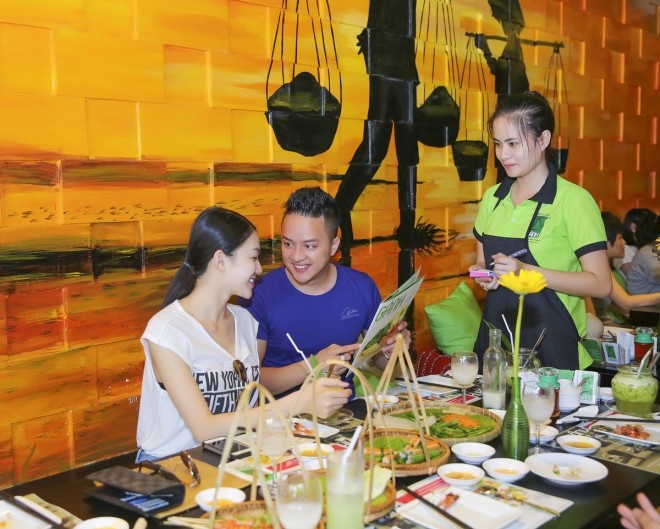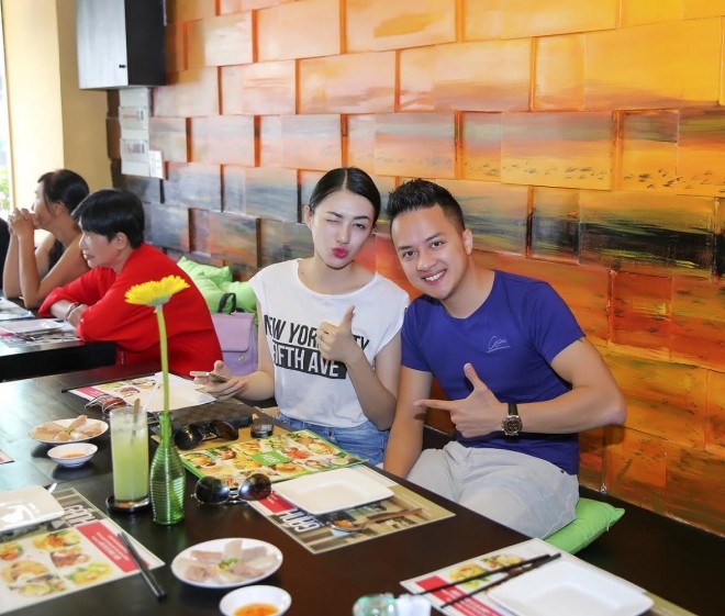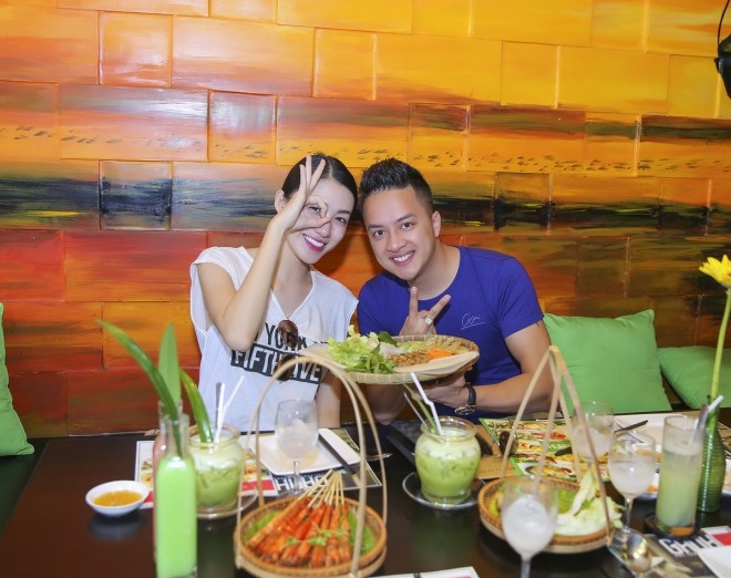 | Cao Thái Sơn cho biết, tranh thủ ngày nghỉ, anh đưa Lê Hà đi ăn uống để cổ vũ tinh thần cho cô trong đêm thi chung khảo sắp tới tại Bạc Liêu. |