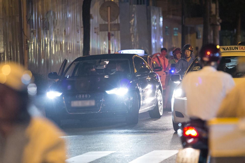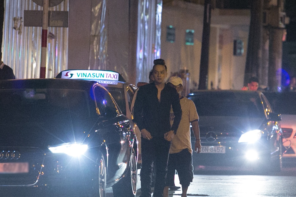 Nam ca sĩ không ngần ngại đậu chiếc Audi màu xanh đen mới tậu ở ven đường để tụ tập cùng bạn bè.