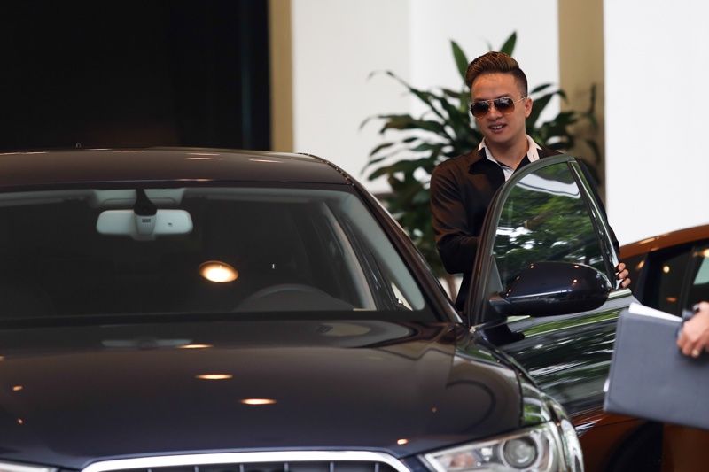 Sáng 24/9, Cao Thái Sơn đưa một cô bạn gái cùng đi xem chiếc xe dự định mua. Họ di chuyển bằng taxi tới một trong những salon xe hơi lớn nhất nhì TP.HCM.