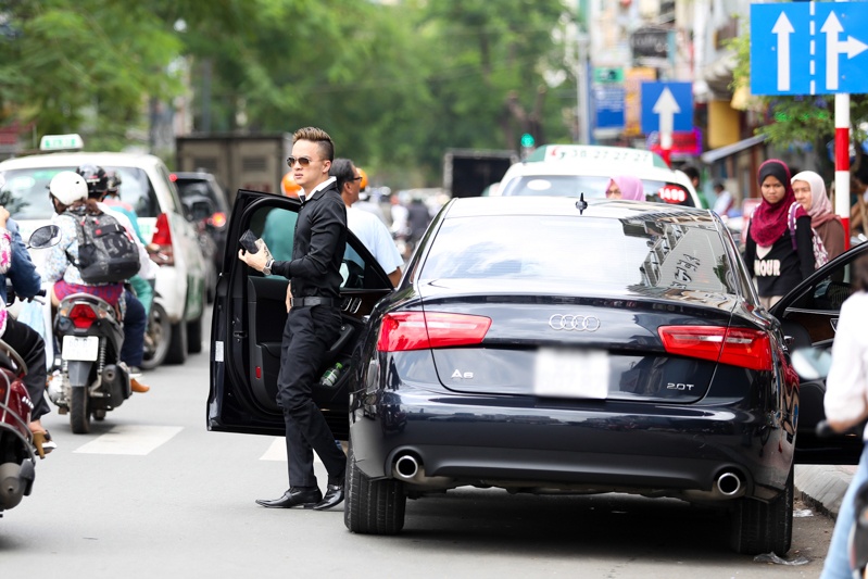 Chiếc xe Cao Thái Sơn mua có giá khoảng 3 tỷ. Anh đã tới xem xe từ vài hôm trước nên sáng 24/9, nam ca sĩ chỉ kiểm tra một lần chót các thủ tục đăng ký và phần ngoài của xe.