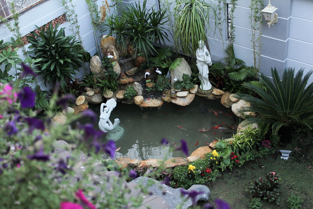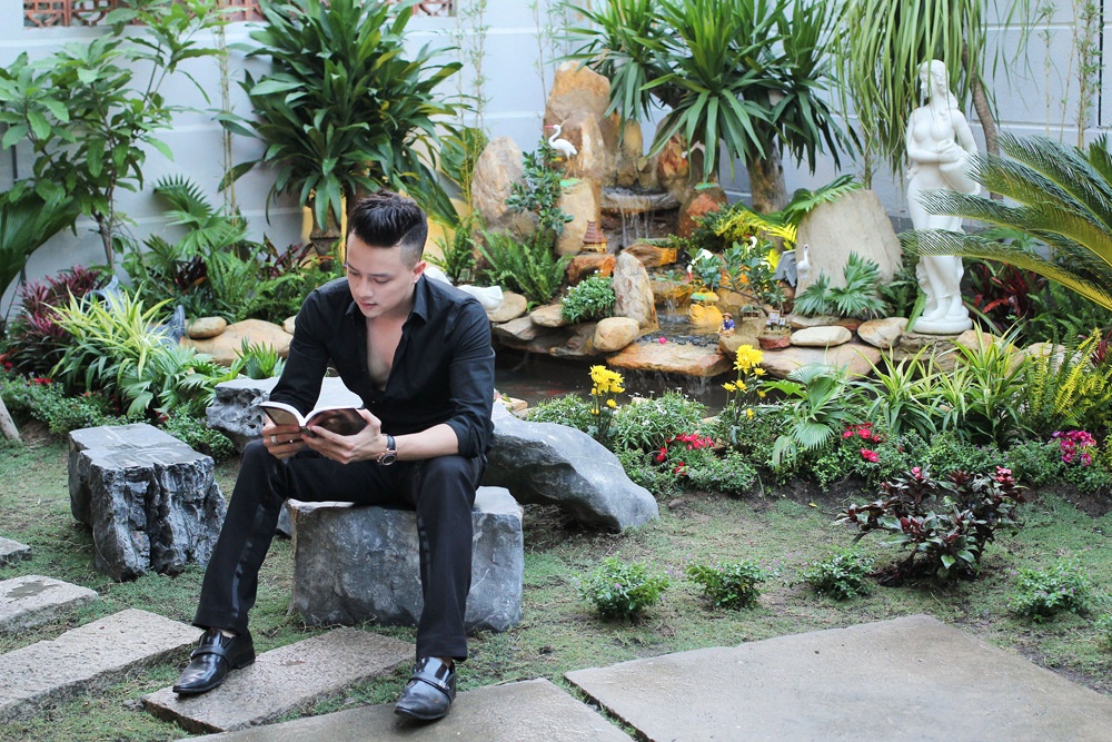 Giọng ca Con đường mưa có sở thích nuôi cá cảnh. Anh mua nhiều loại cá thả vào hồ nhỏ được thiết kế trước sân.