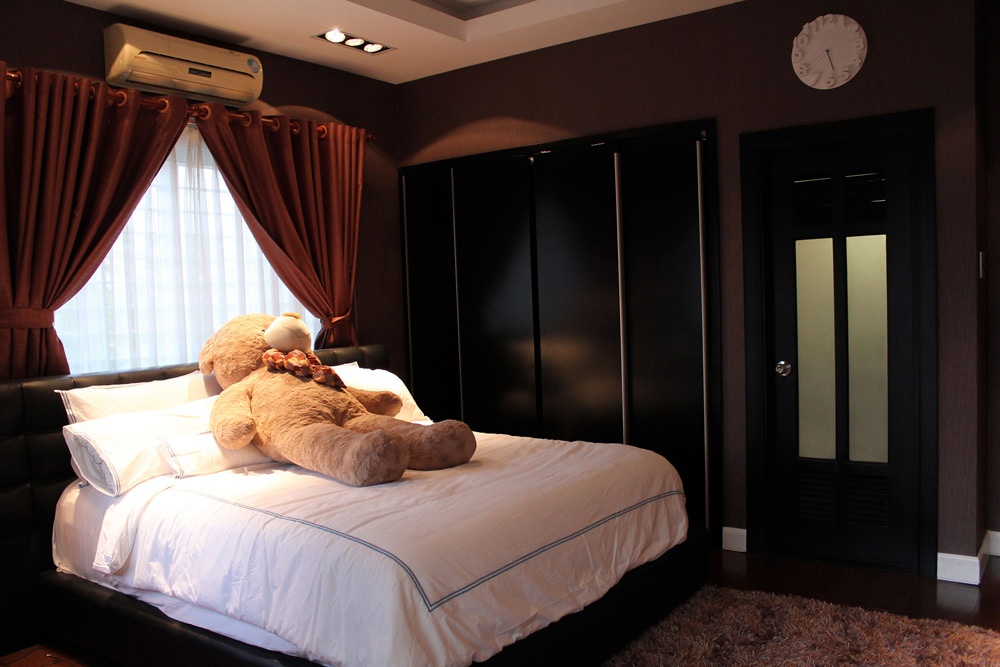 | Phòng ngủ của nam ca sĩ được trang trí màu tối tạo cảm giác dễ ngủ, ấm áp. |