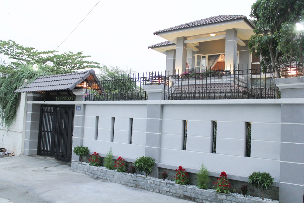 Căn nhà riêng của Cao Thái Sơn nổi bật với cổng lớn khang trang. Mặt đường rộng tiện lợi cho xe hơi.