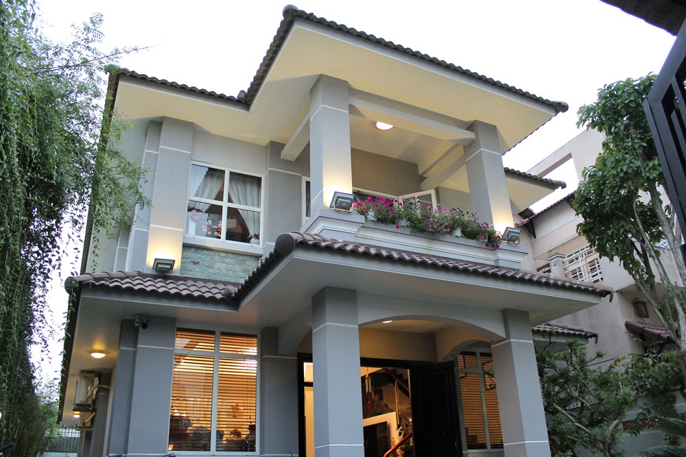 Ngôi nhà nằm trên khu đất rộng khoảng 200 m2, có vườn và nhiều cây xanh. Nhà được thiết kế theo không gian mở với nhiều cửa sổ.