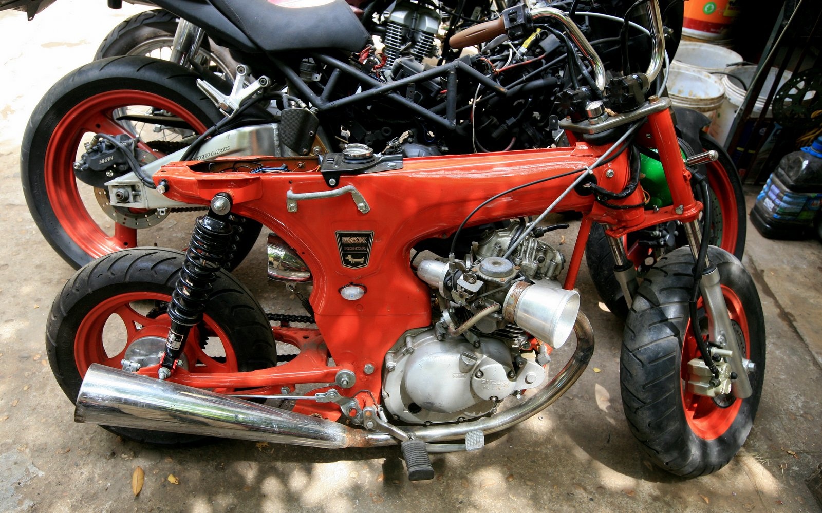 | Hà Nội có nhiều cao thủ về độ xe, nhưng nổi tiếng nhất về tài độ các dòng xe mini như Chaly, Honda Dax... phải kể đến người đàn ông có biệt danh Dũng "bưởi". Qua tay anh, các loại xe đều trở thành những sản phẩm độc đáo. |