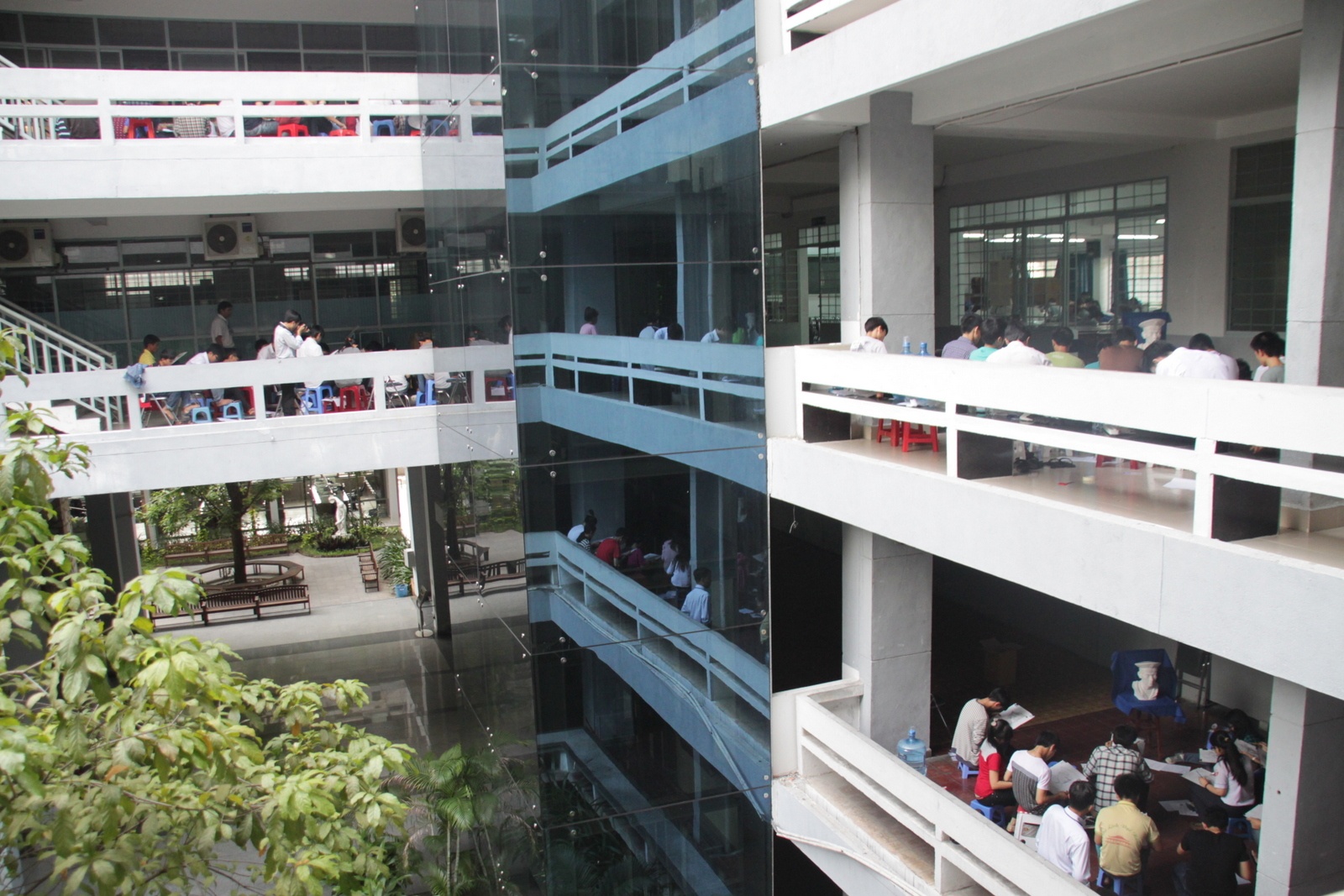 Khắp các dãy hành lang, cầu thang, trong phòng học được chọn làm nơi làm bài thi vẽ mỹ thuật của thí sinh khối V1.