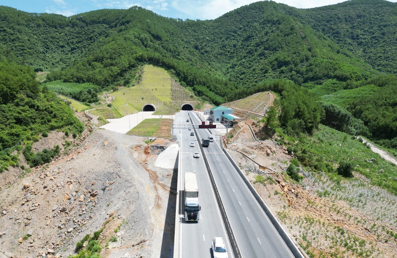 Đại diện Đội CSGT đường bộ giao thông số 4, Phòng 6, Cục CSGT cho biết dịp Tết lưu lượng giao thông tăng cao và cao tốc Bắc - Nam qua hầm Thần Vũ chỉ có một làn xe cho mỗi chiều đường dẫn đến đoạn hầm dài 1,1 km này đang là điểm ùn tắc.