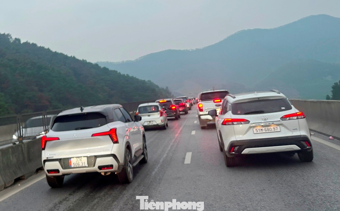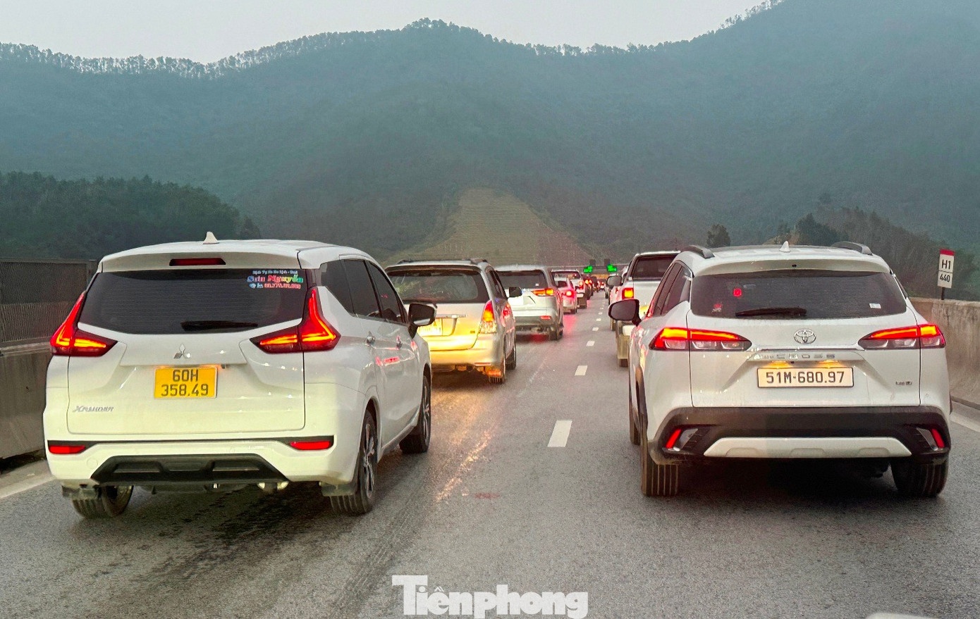 Trong ngày mùng 4 Tết, ùn tắc kéo dài xảy ra trên cao tốc Bắc Nam đoạn qua hầm Thần Vũ thuộc dự án thành phần Diễn Châu - Bãi Vọt.