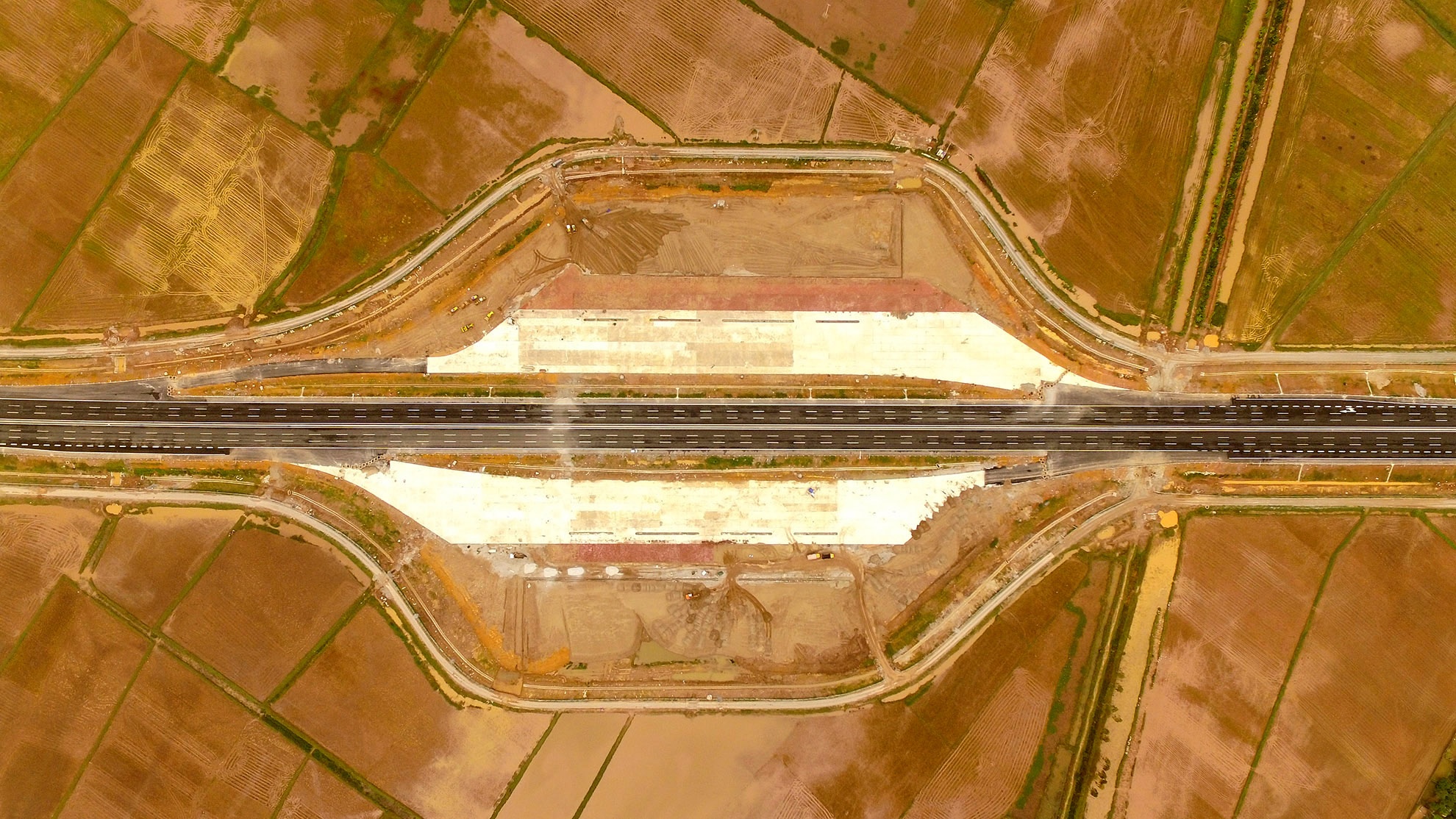 | Toàn tuyến có 39 vị trí giao cắt trực thông (đường ngang vượt đường cao tốc bằng cầu vượt hoặc đường ngang đi dưới cao tốc bằng hầm chui), bao gồm đường gom hai bên để kết nối các đường dân sinh địa phương. Trong ảnh là nút giao với quốc lộ 10. |