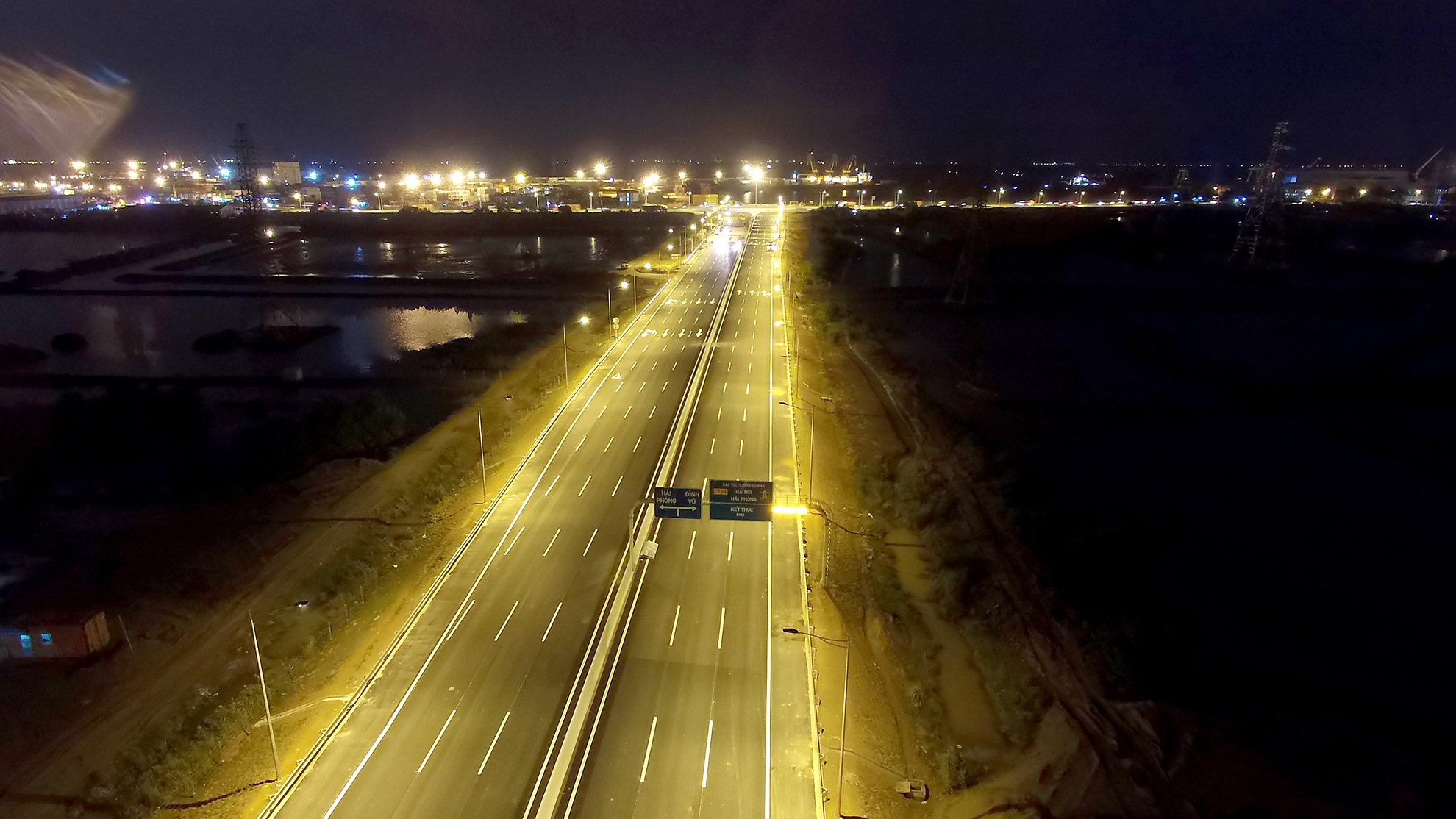 | Cao tốc Hà Nội - Hải Phòng lung linh về đêm. |