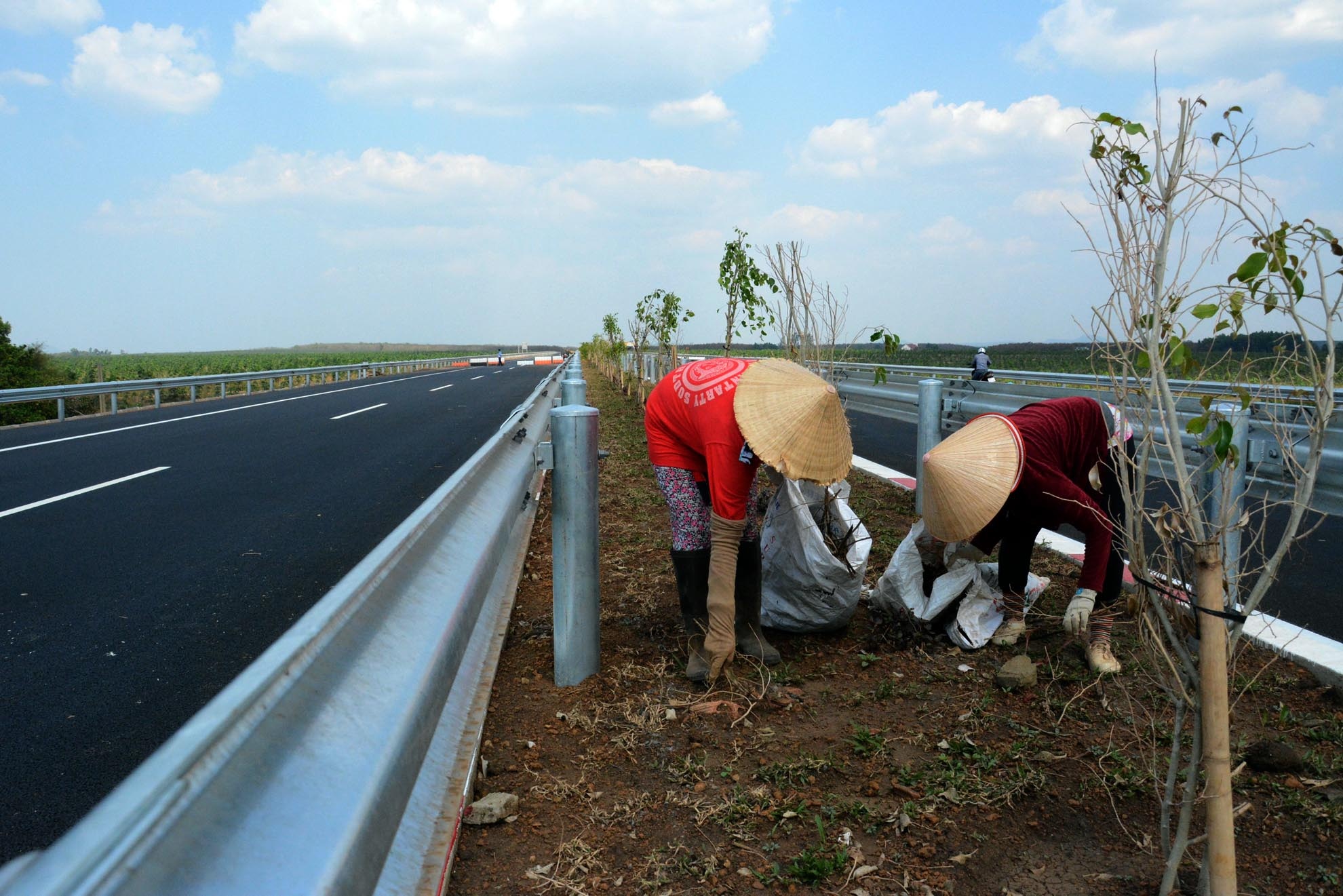 | Công nhân dọn các loại rác giữa dải phân cách. Đơn vị đầu tư khẳng định, đây sẽ là tuyến cao tốc không có rác. Nhiều băng rôn "Xin cho rác" được treo hai bên đường. Các nhân viên ở trạm thu phí của Công ty Cổ phần Dịch vụ kỹ thuật đường cao tốc Việt Nam (VECE), đơn vị khai thác, quản lý đường cao tốc Long Thành ngoài việc nói lời: “Xin chào”, “Xin cám ơn” khi thu phí đối với các xe đi vào tuyến cao tốc còn phải ngỏ lời xin… rác trên xe. |