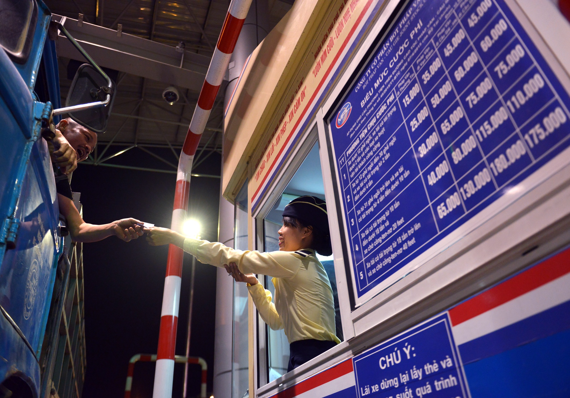 | Nhân viên phát vé tại trạm thu phí km 188 + 300. |