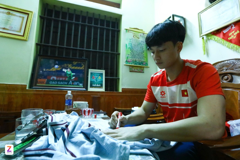 - Khi chúng tôi đến sân thi đấu và vào phòng thay đồ để chuẩn bị ra khởi động, thầy thông báo đội hình. Nghĩa là tôi chỉ biết mình sẽ bắt chính trước 2 tiếng ra sân. Thú thực, tôi hơi hồi hộp ở phòng thay đồ. Nhưng lúc ra sân thì tôi lại khá tự tin và khát khao chiến đấu vì cơ hội này không dễ đến.