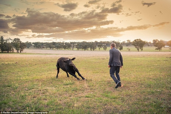 | Cặp đôi này không biết rằng, trong lúc họ đang “đối phó” với bò thì mọi hành động của mình đều lọt vào ống kính của Rachel. Nhiếp ảnh gia này đã nhanh tay bấm liên tục để ghi lại những khoảnh khắc thú vị, có thể xem là “để đời” cho hai vợ chồng, nhất là ngay trong ngày trọng đại của họ. |