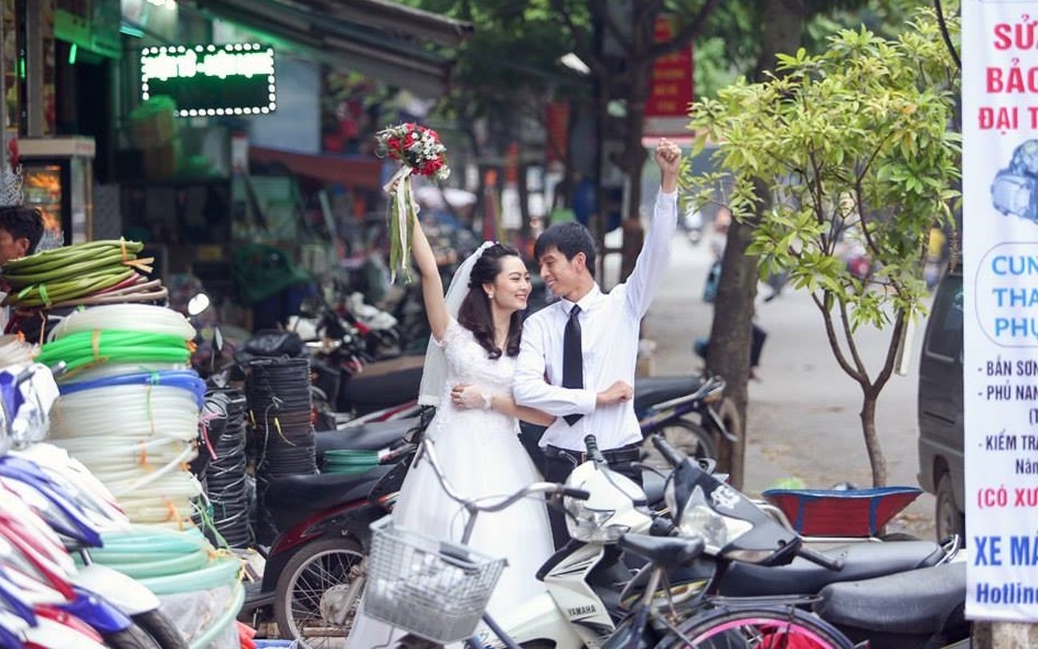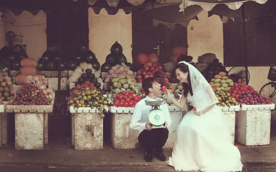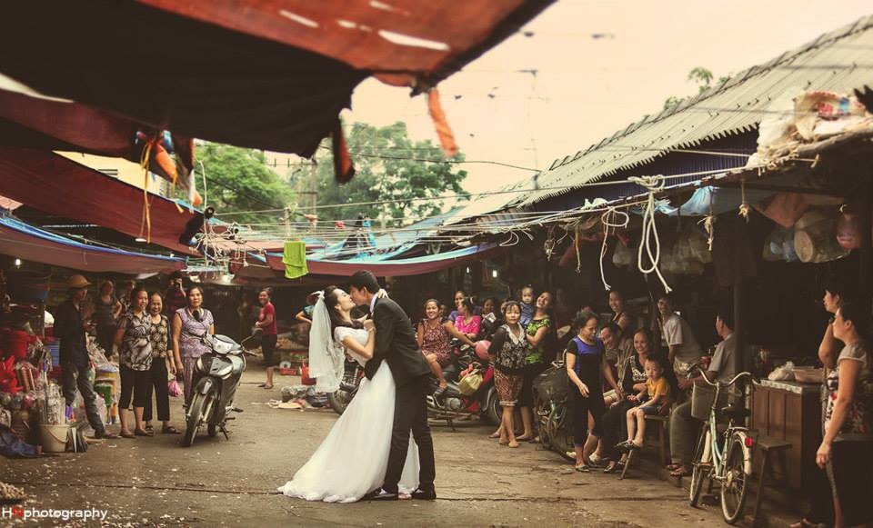 | Ngày 11/10 trên diễn đàn giải trí dành cho giới trẻ, đã đăng tải các hình ảnh cưới của một cặp đôi trẻ. Thay vì chọn những nơi sang trọng, lãng mạn như studio hay phim trường, thì cặp đôi này lại chọn một ngôi chợ bình thường để ghi lại những khoảnh khắc hạnh phúc của cả hai. Sau vài giờ đăng tải, các hình ảnh cưới này nhận được sự quan tâm của cư dân mạng với hơn 20.000 lượt xem, cùng hàng trăm bình luận sôi nổi. Mọi người đều tỏ ra vô cùng thích thú trước sự giản dị và gần gũi của bộ ảnh. |