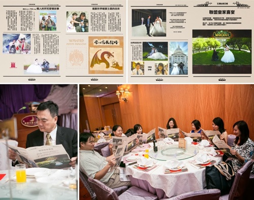 | Đặc biệt, chàng và nàng còn kỳ công làm hẳn một tờ "tạp chí thu nhỏ" phong cách kiếm hiệp để khách mời đọc và cảm nhận câu chuyện tình yêu của họ. |