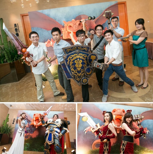 Toàn bộ không gian của lễ đính hôn được dàn dựng theo màu sắc, phong cách của trò chơi. Thậm chí họ hàng, người thân, bạn bè cũng ngỡ ngàng khi thấy những đồ vật trên bàn tiệc cũng hoàn toàn mô phỏng trong trò chơi.