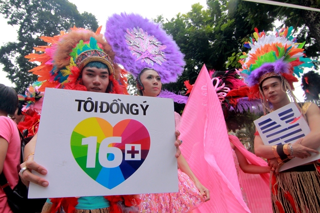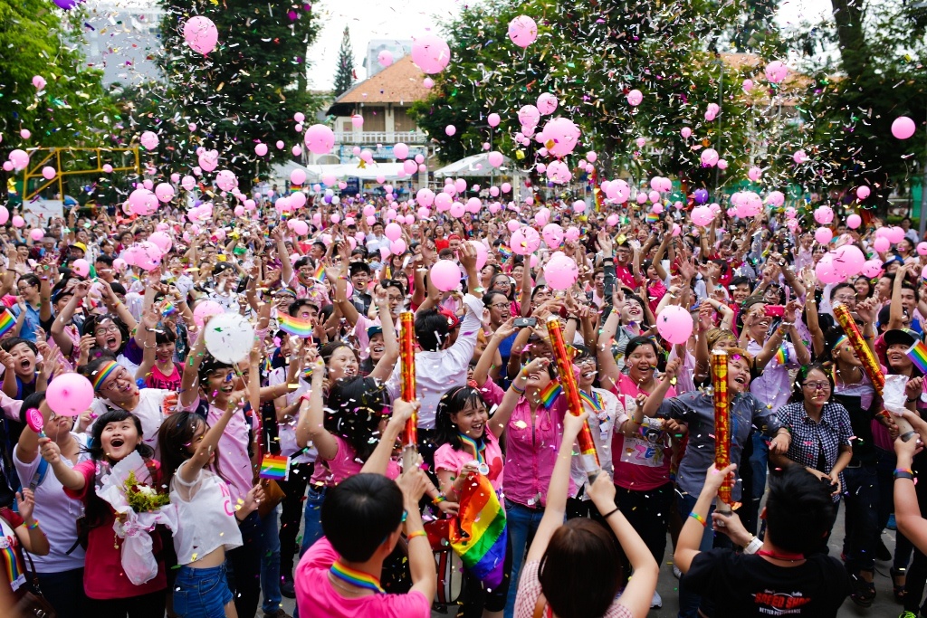 | Điểm nhấn trong 3 ngày diễn ra ngày hội Viet Pride buổi diễu hành vòng quanh trung tâm Sài Gòn của khoảng 1.000 bạn trẻ. Hoạt động nhằm đón nhận sự ủng hộ của các bạn thành viên ngoài cộng đồng LGBT muốn góp phần thay đổi định kiến trong xã hội. Ảnh do Trung tâm ICS cung cấp. |