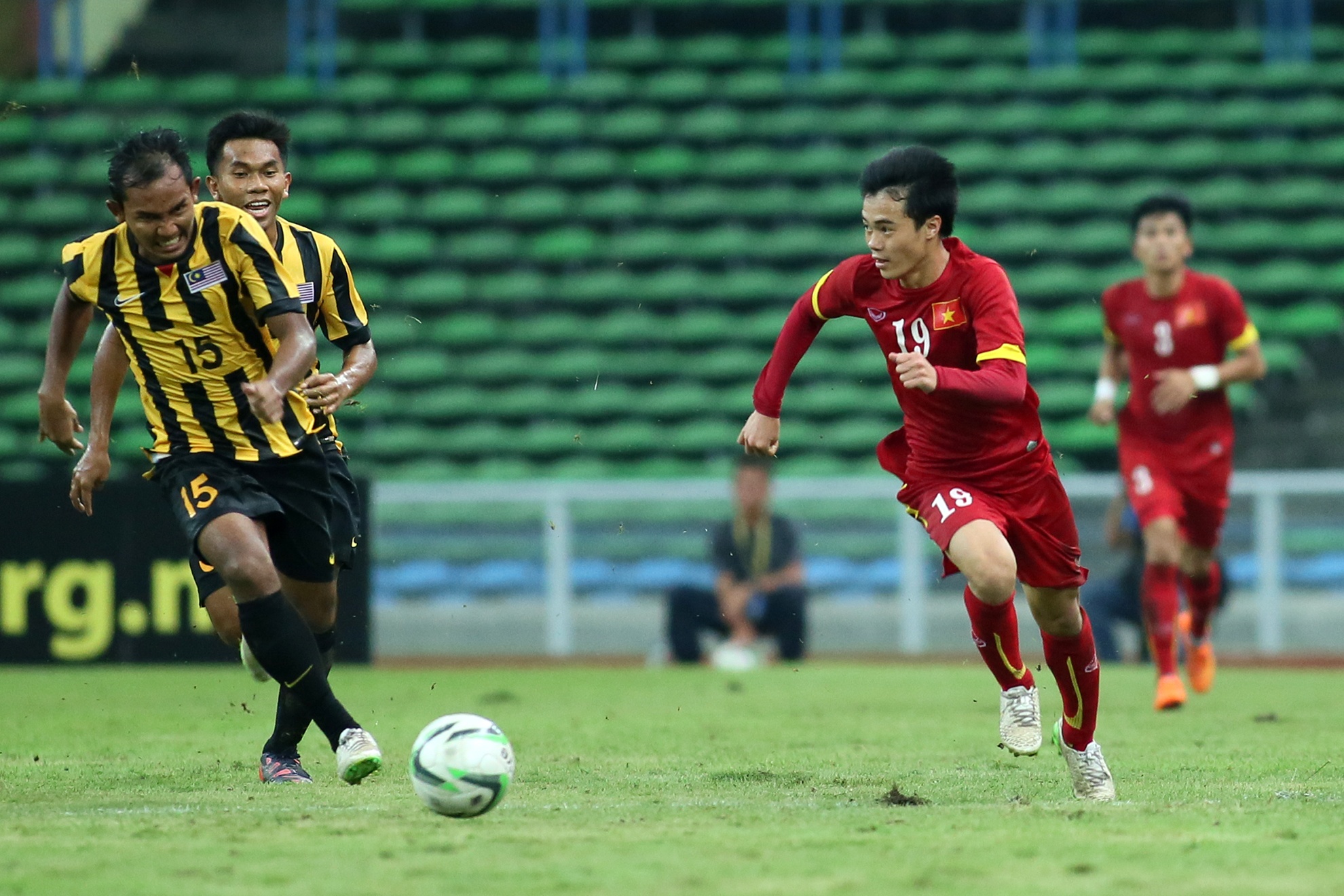 | Trong hiệp hai, Văn Toàn liên tục tra tấn hậu vệ U23 Malaysia bằng những pha phản công tốc độ. |