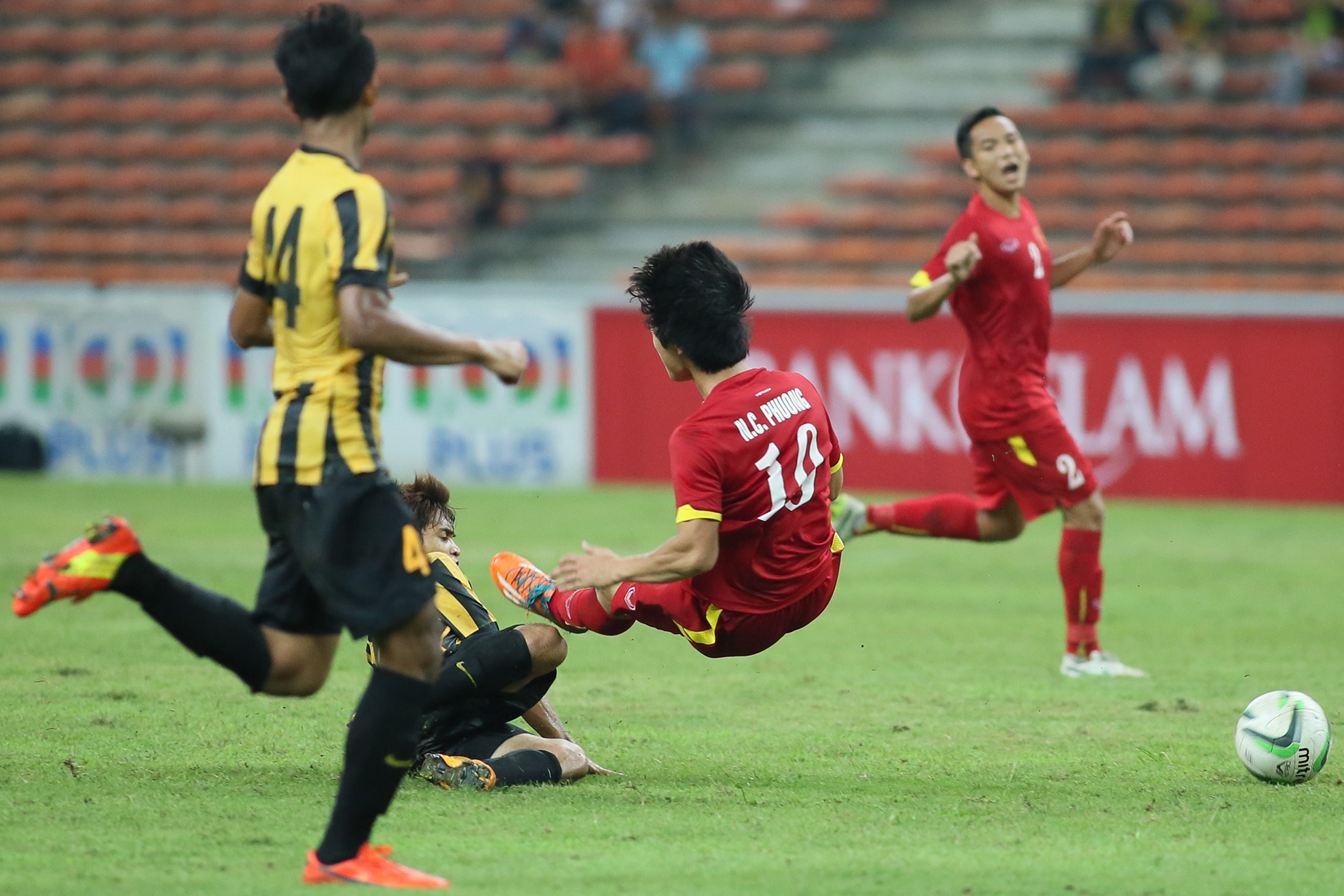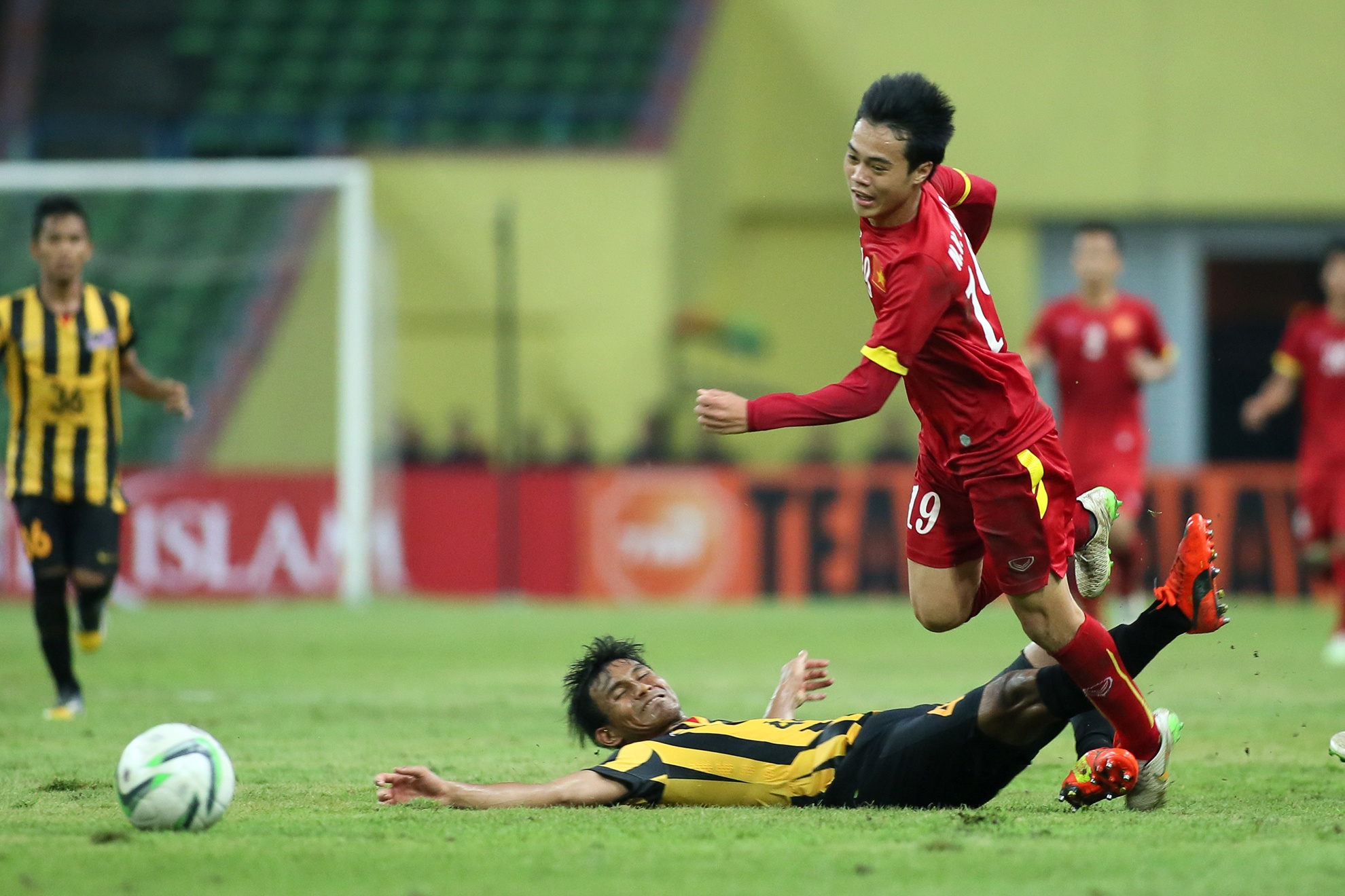 Những pha đột phá kỹ thuật và đầy tốc độ của cặp tiền đạo Công Phượng - Văn Toàn khiến hậu vệ U23 Malaysia vất vả cản phá, thậm chí phải phạm lỗi.