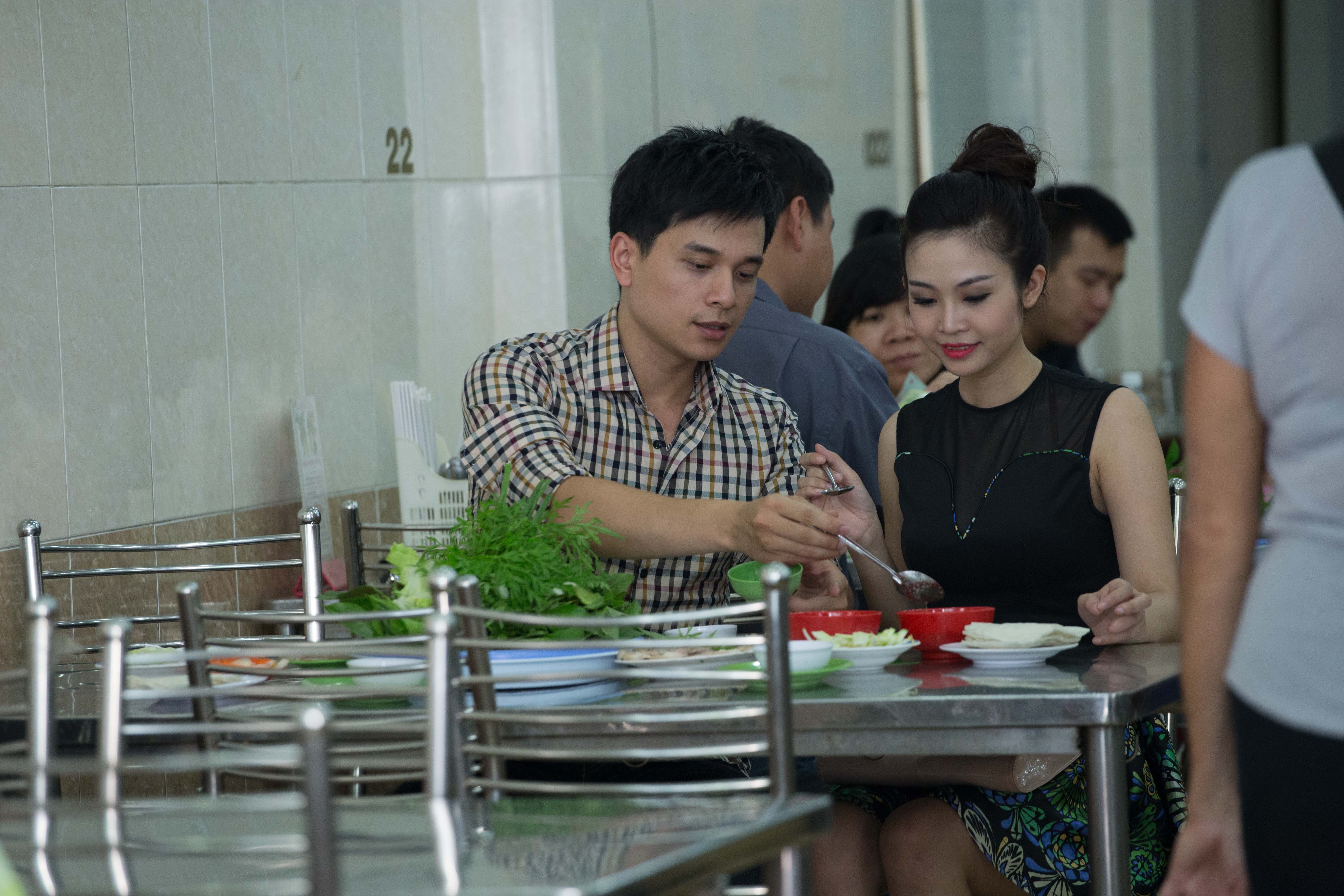 | Thùy Linh được Danh Tùng chăm chút suốt bữa ăn. Trong một cuộc phỏng vấn gần đây, cô chia sẻ mẫu đàn ông trong mơ của mình phải "là một người bản lĩnh, hài hước, nói ít, làm nhiều, và tôn trọng suy nghĩ, con đường mà tôi đã lựa chọn". |