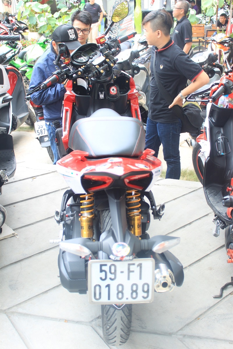 Đầu Nouvo phiên bản Ducati được chế lại trông dữ dằn với cặp mắt bằng đèn LED, dán giấy giả sợi carbon.