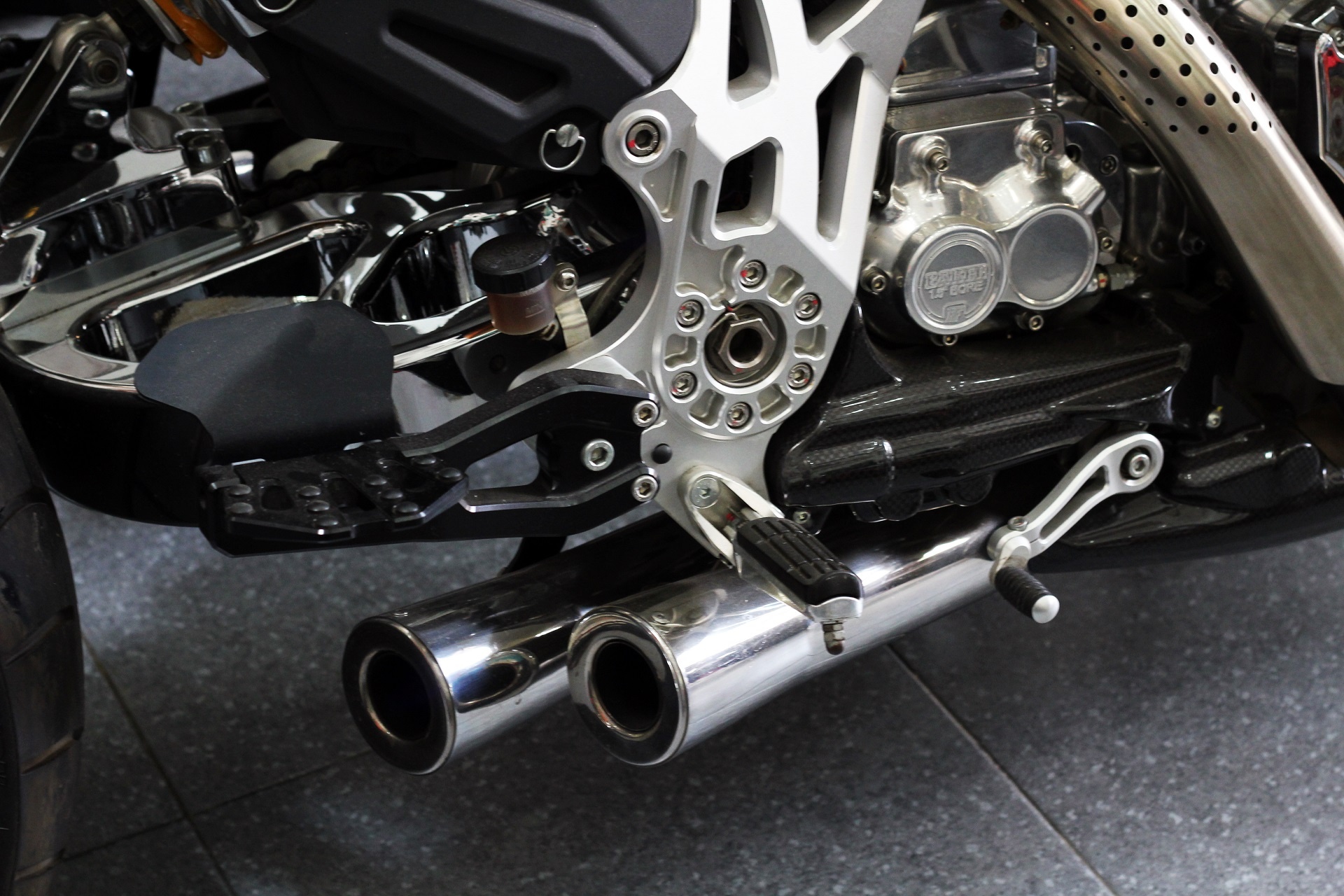 Ống xả được phát triển bởi CR & S, dưới gầm máy là hệ thống cộng hưởng- giảm thanh, tạo nên âm thanh đặc biệt.