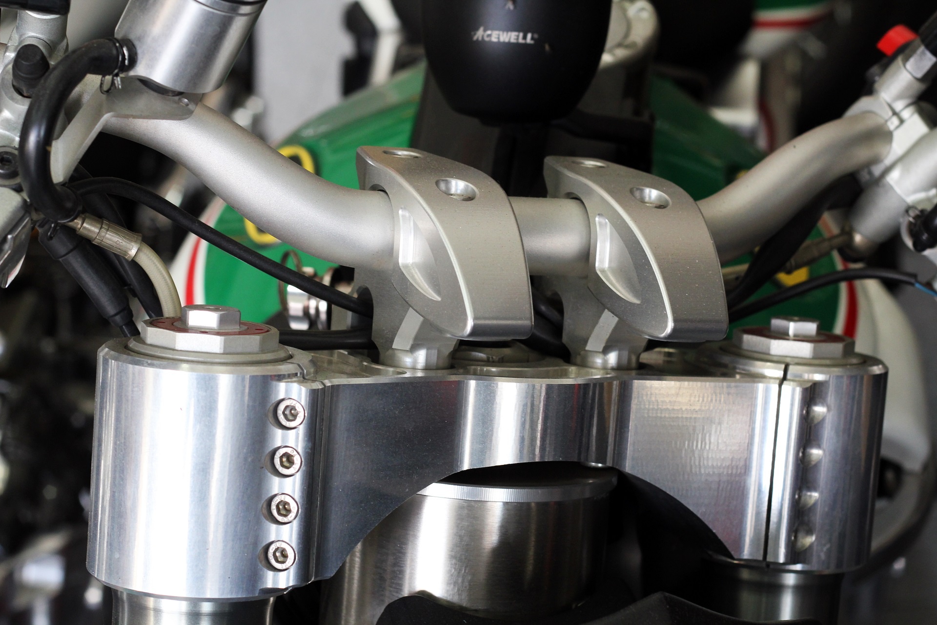 | Tay lái được cắt từ nhôm và thép không rỉ. |