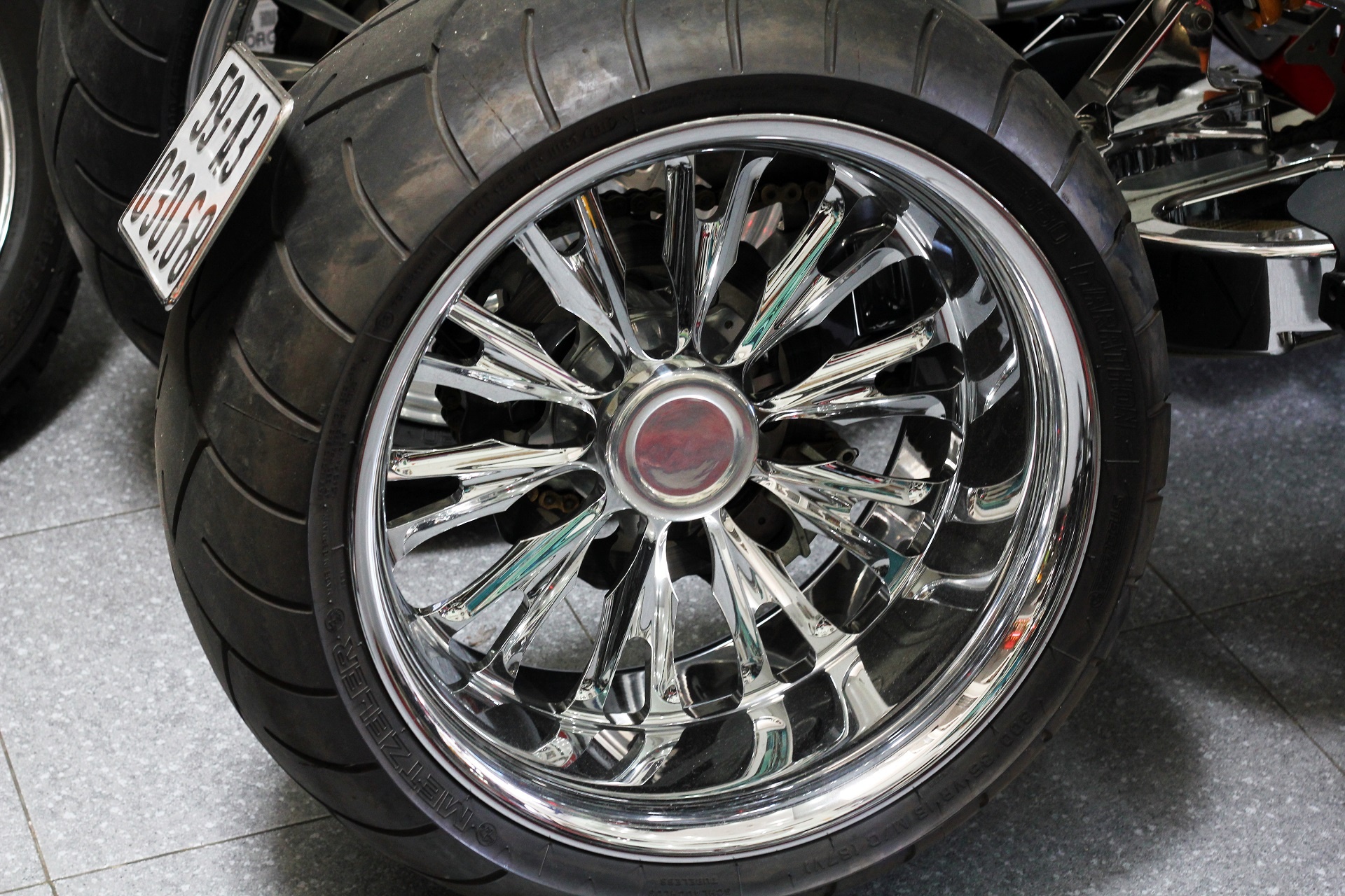 Kích thước lần lượt ở bánh trước và sau là 120 / 70-17 và 190 / 55-17, xe được lắp cặp lốp Pirelli. Chiếc xe này được lắp vành độ 10 chấu mạ chrome.