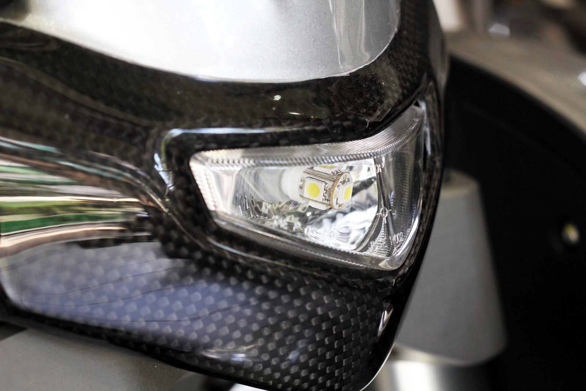 | Đèn pha công nghệ LED hiệu suất cao, xung quanh bọc sợi carbon. |