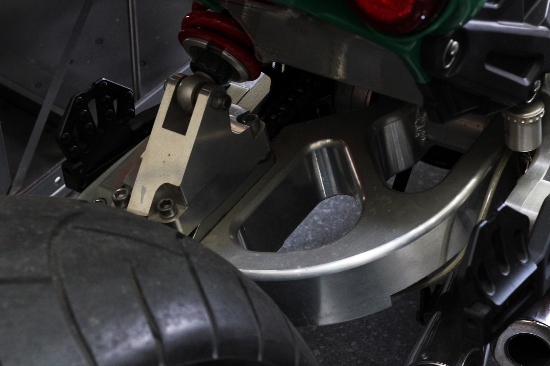 | Gắp đơn phía sau được tạo ra từ những ống thép có kích thước lớn, giảm chấn sau sử dụng mono-shock. |