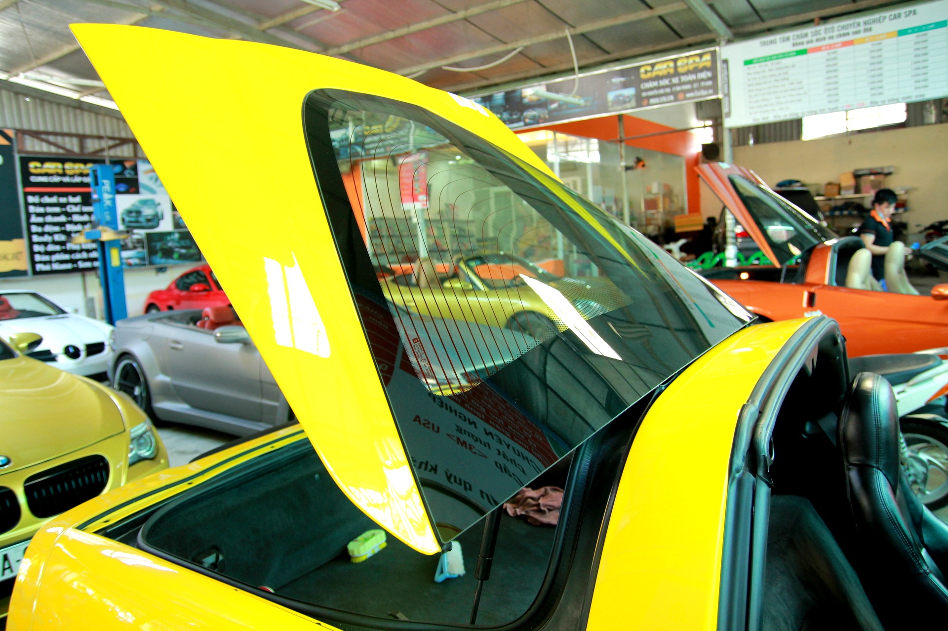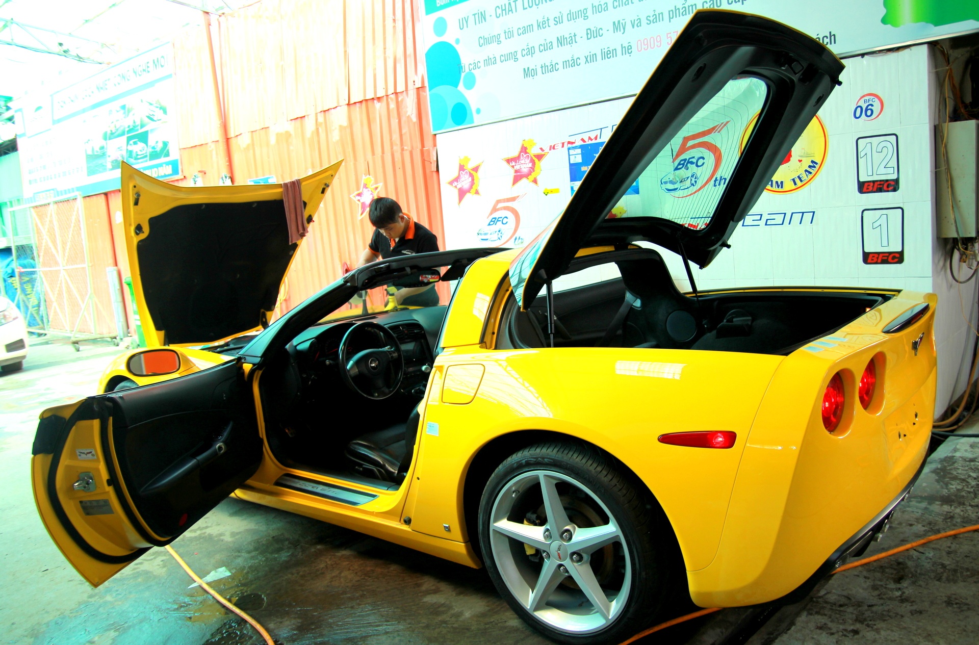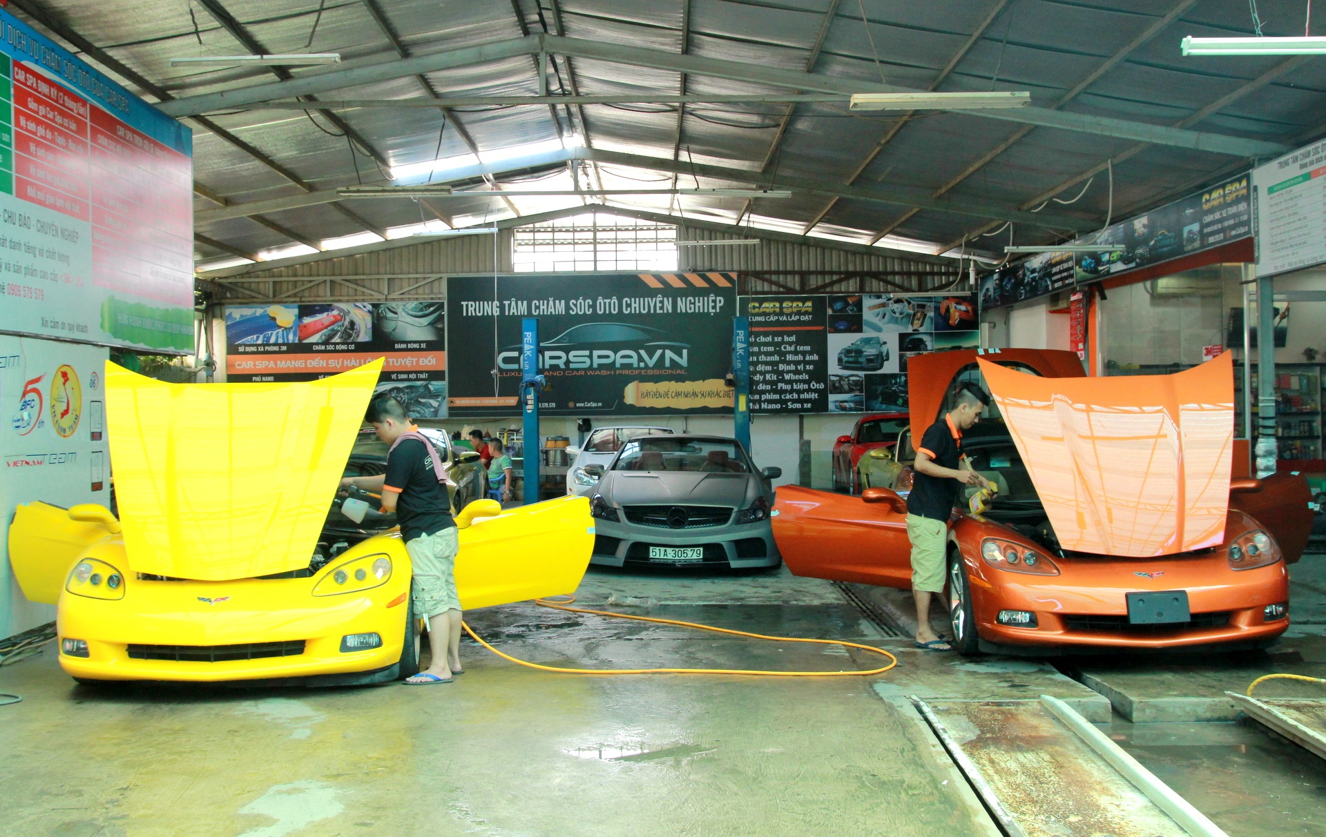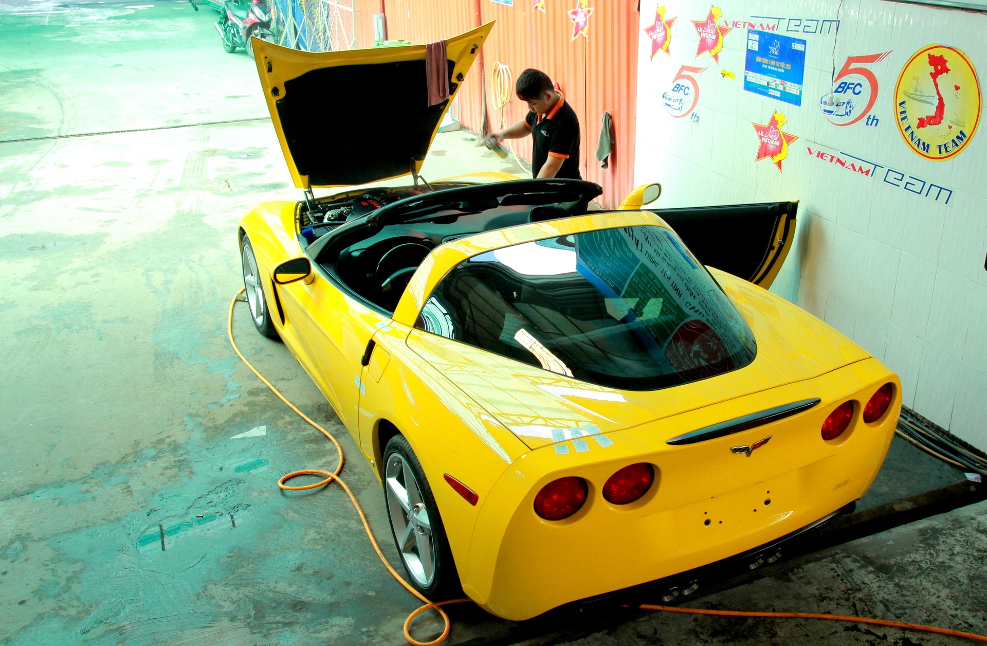 | Chiếc xe đang được vệ sinh máy móc, nội thất và ngoại thất. |