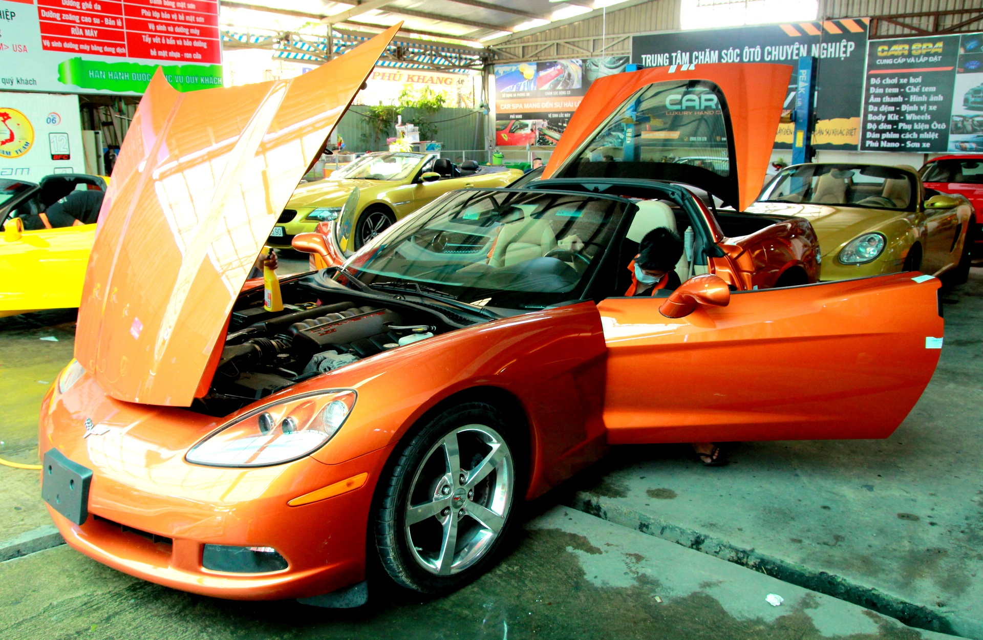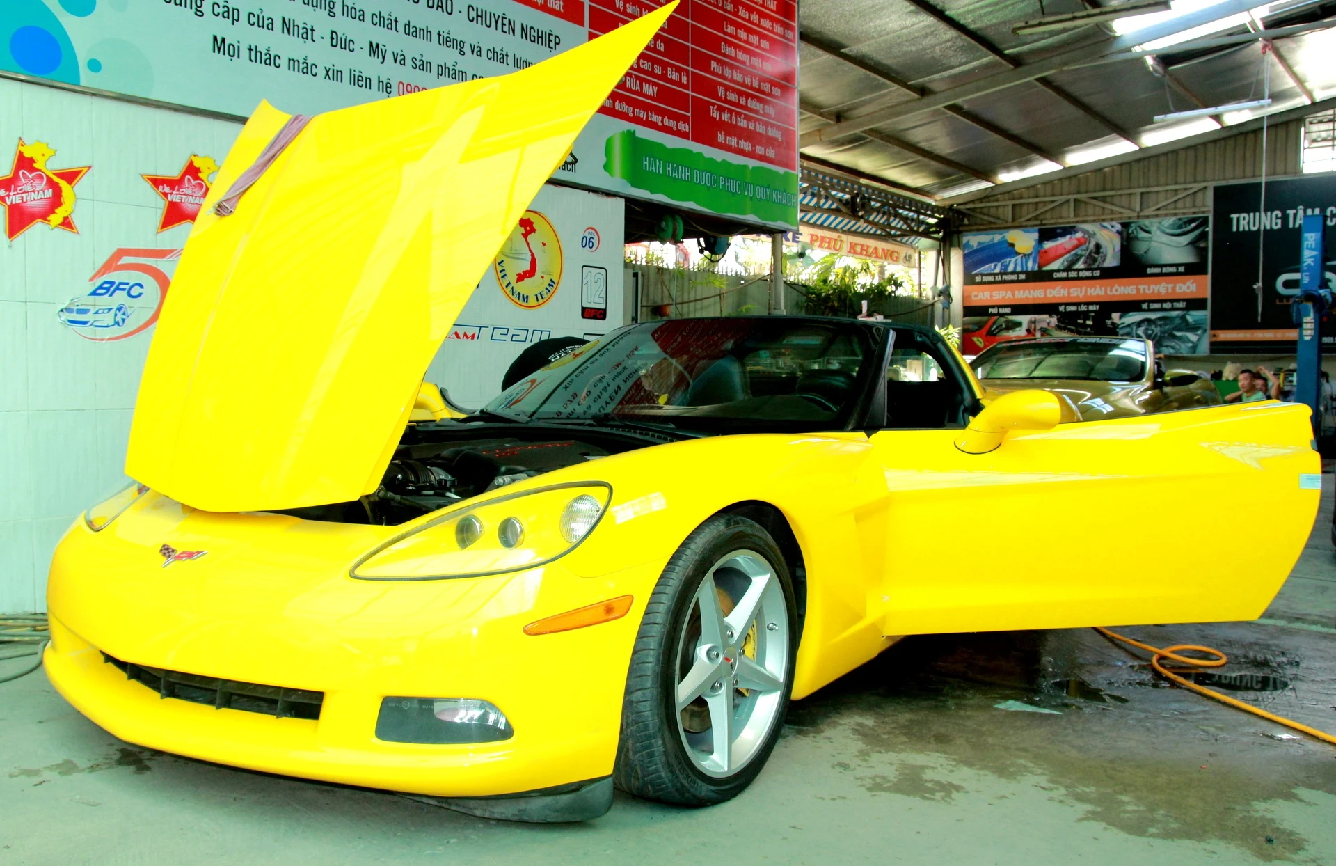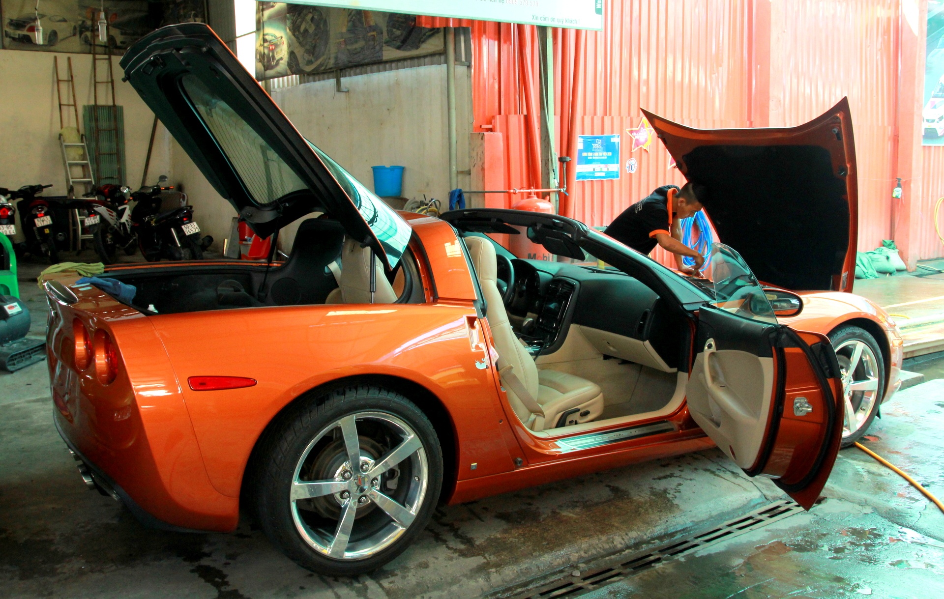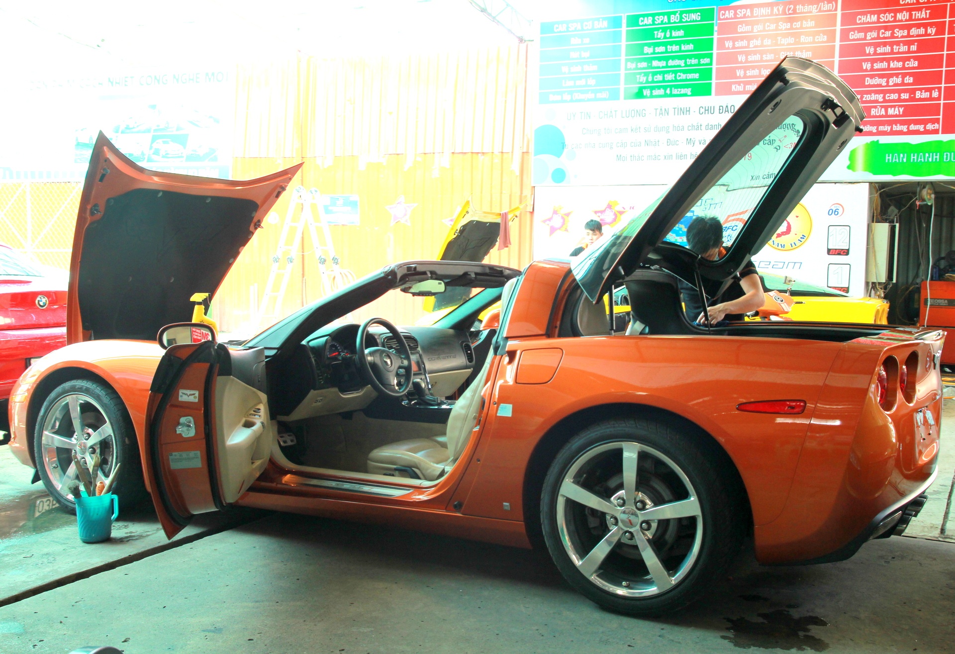 | Sáng 25/12, tại một garage chuyên sửa chữa siêu xe tại quận 7 xuất hiện khá nhiều mẫu xe thể thao. Nổi bật trong dàn xe này là cặp đôi Chevrolet Corvette C6 màu vàng và màu cam đậm. Cách đây gần một tuần, trên Facebook đã lan truyền hình ảnh cặp đôi xe thể thao này được xe tải chở trên đường. |