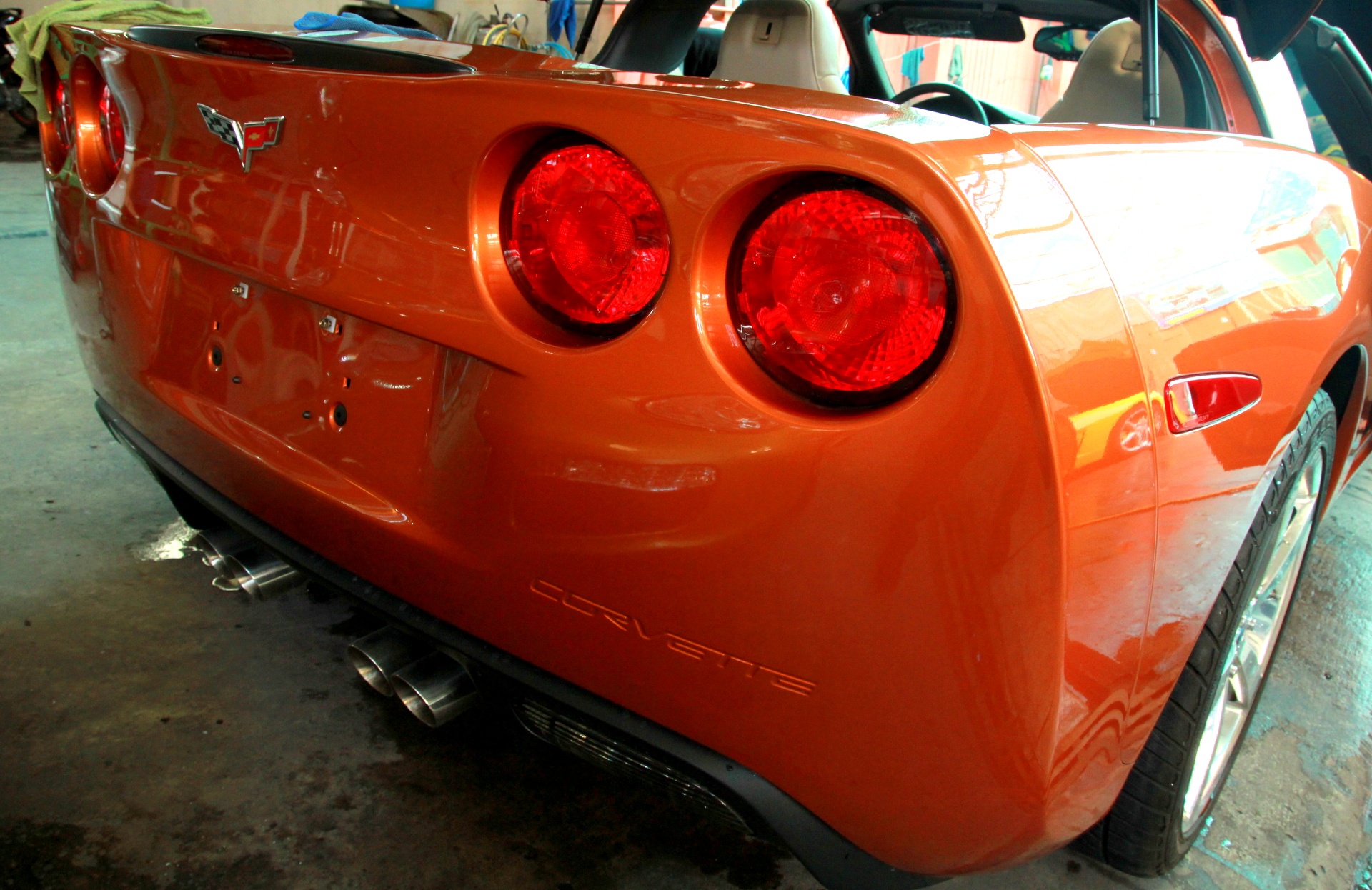 | Cụm đèn hậu bốn chóa hình tròn, đối xứng qua trục là logo Corvette. Phía dưới là cụm bốn ống xả phát ra âm thanh đầy uy lực. |