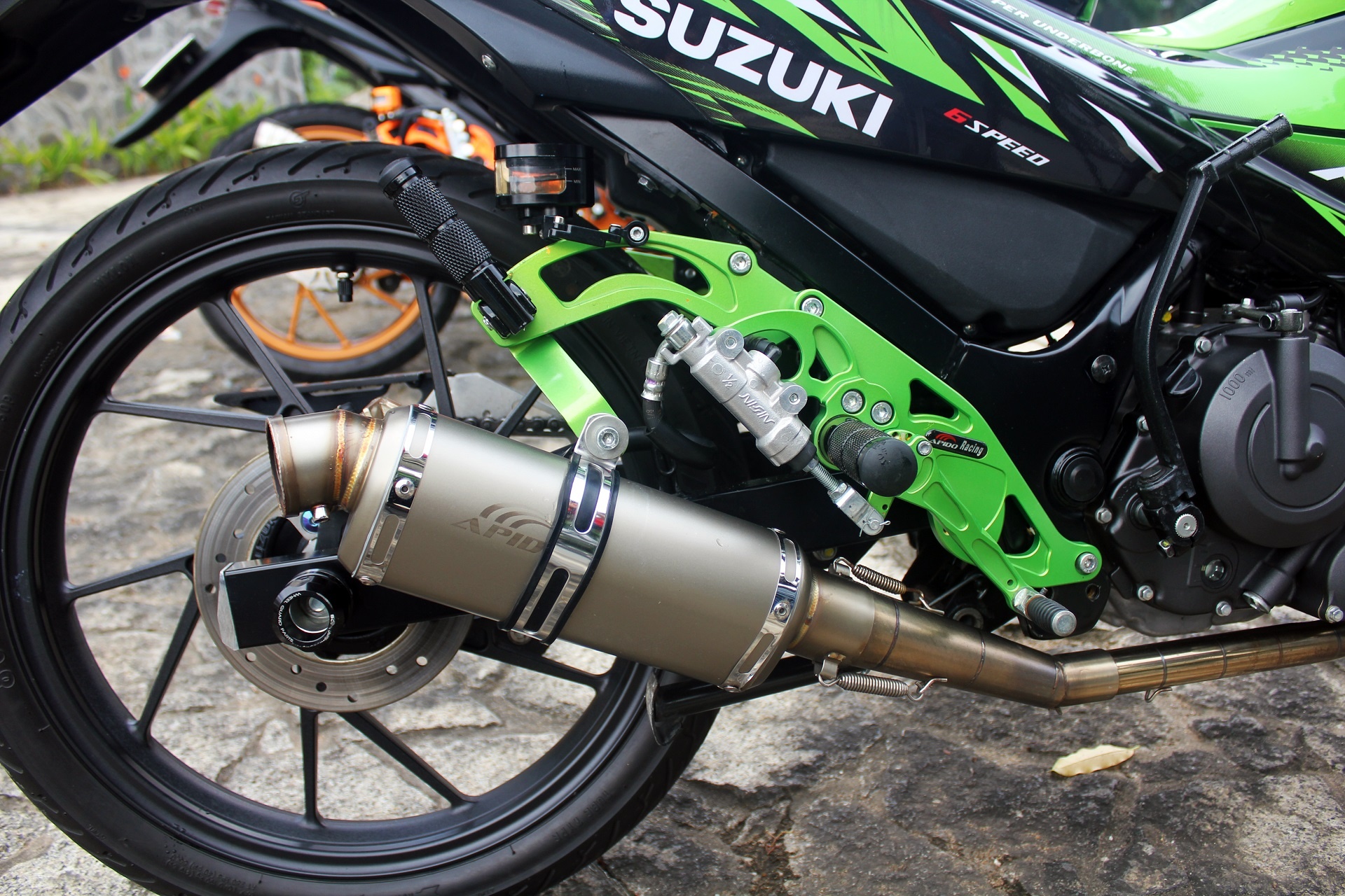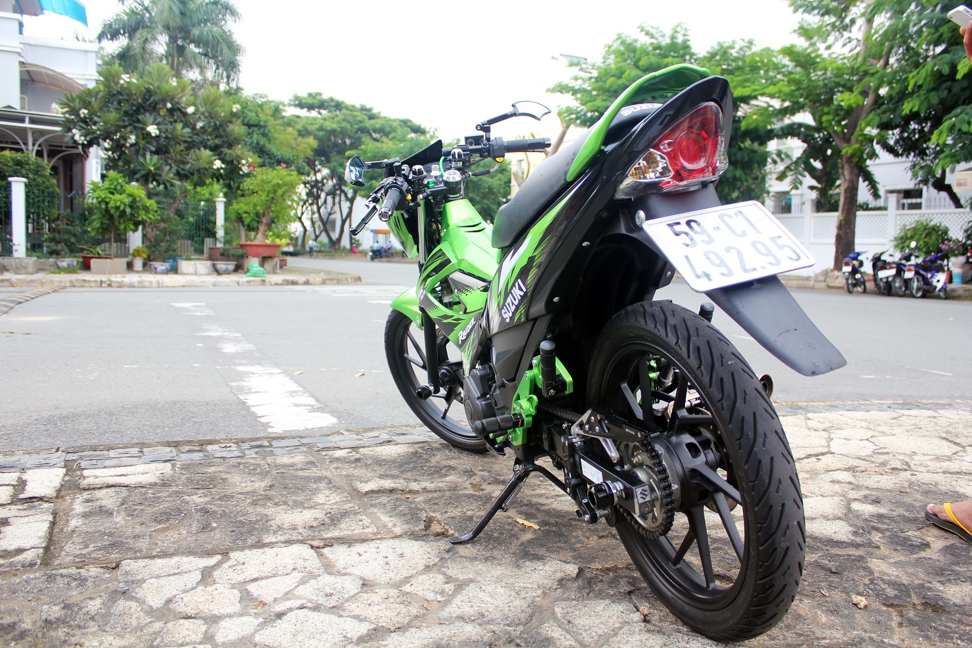 | Xuất hiện bên cạnh mẫu Satria màu cam là chiếc Raider màu xanh nõn chuối. |