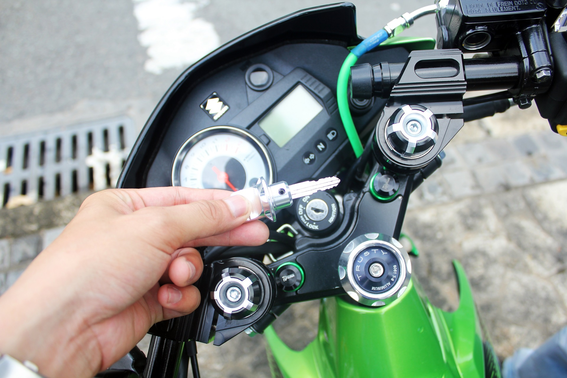 | Cũng tương tự như chiếc màu cam, chìa khóa xe được cắt lại bằng nhôm. |