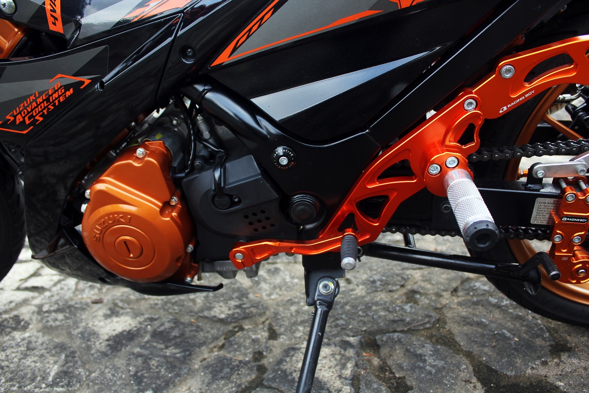 Cũng như những chiếc Satria khác, xe được trang bị động cơ 4 thì, 150cc, công suất 16 mã lực. Tuy nhiên, lốc máy đã được mạ lại màu cam đồng nhất với đồ chơi trên xe.