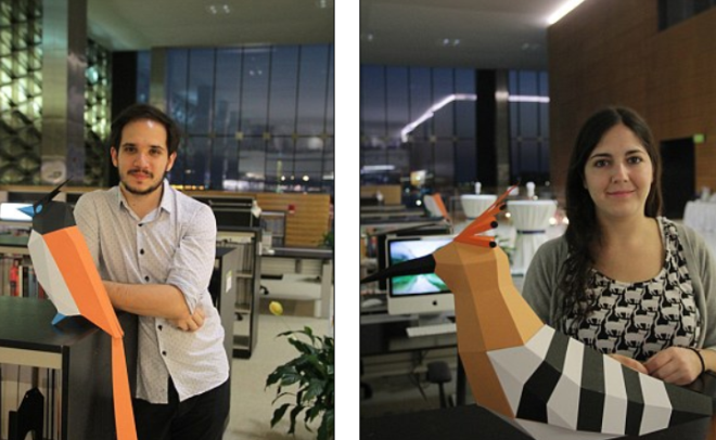 | Juan và Carolina ban đầu tạo ra bản vẽ trên máy tính, rồi sau đó in, cắt ra và gấp dựa trên kỹ thuật origami nổi tiếng của Nhật Bản. |