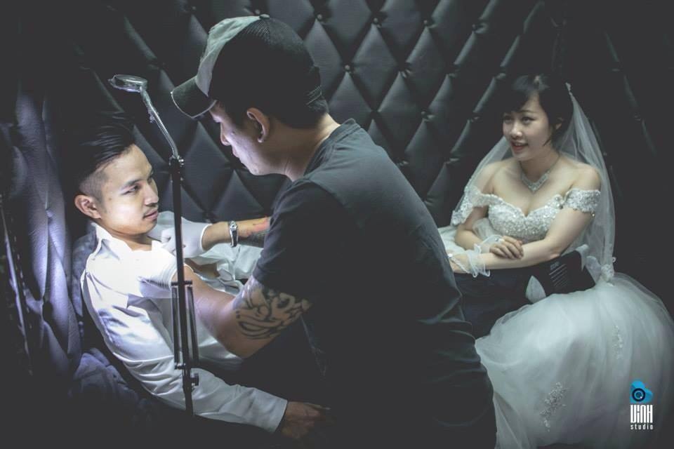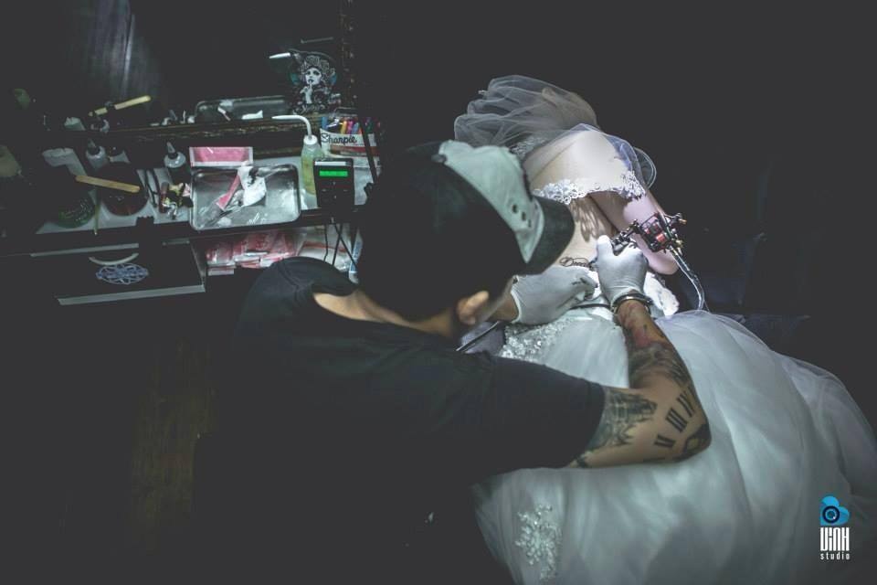 | Đây được xem là bộ ảnh cưới thứ 2 với phong cách độc đáo được thực hiện tại tiệm xăm của đôi vợ chồng trẻ. |