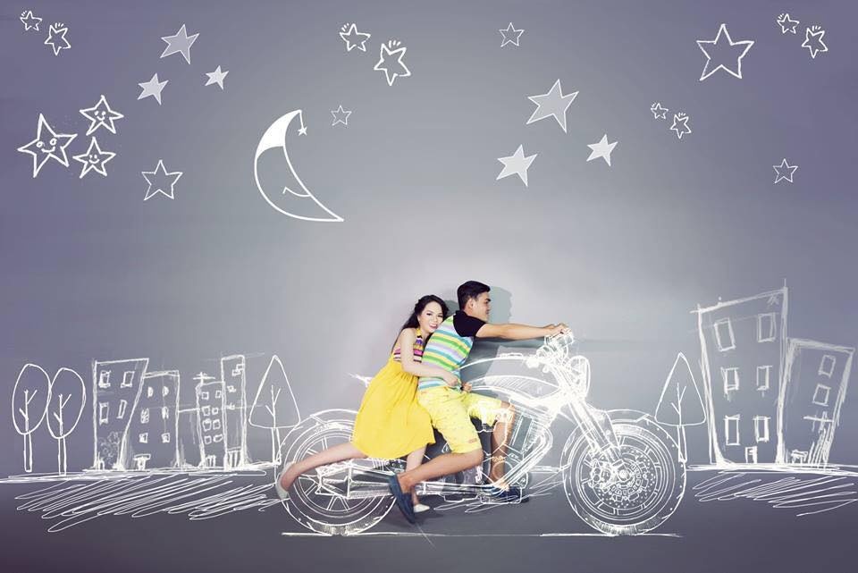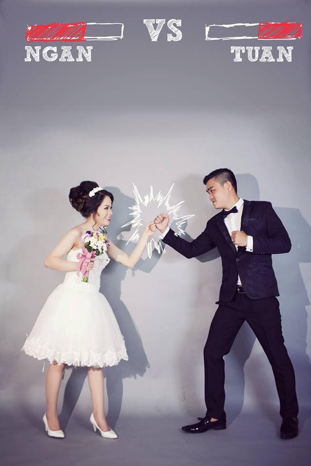 Bộ ảnh cưới theo phong cách ngộ nghĩnh của chú rể Nguỵ Hoàng Tuấn và cô dâu Đặng Nguyễn Kim Ngân, cùng sinh năm 1991 tại thị xã Ngã Bảy, tỉnh Hậu Giang.