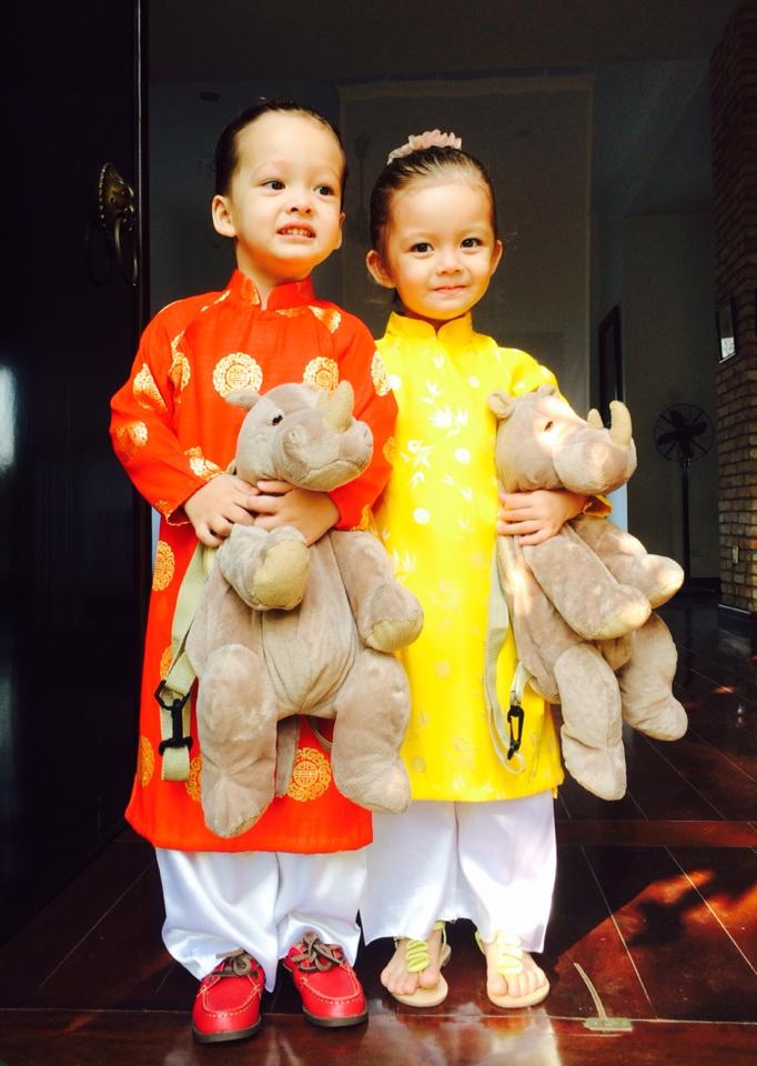 Cặp nhóc tỳ lai Tây nhà Hồng Nhung diện áo dài đón Tết