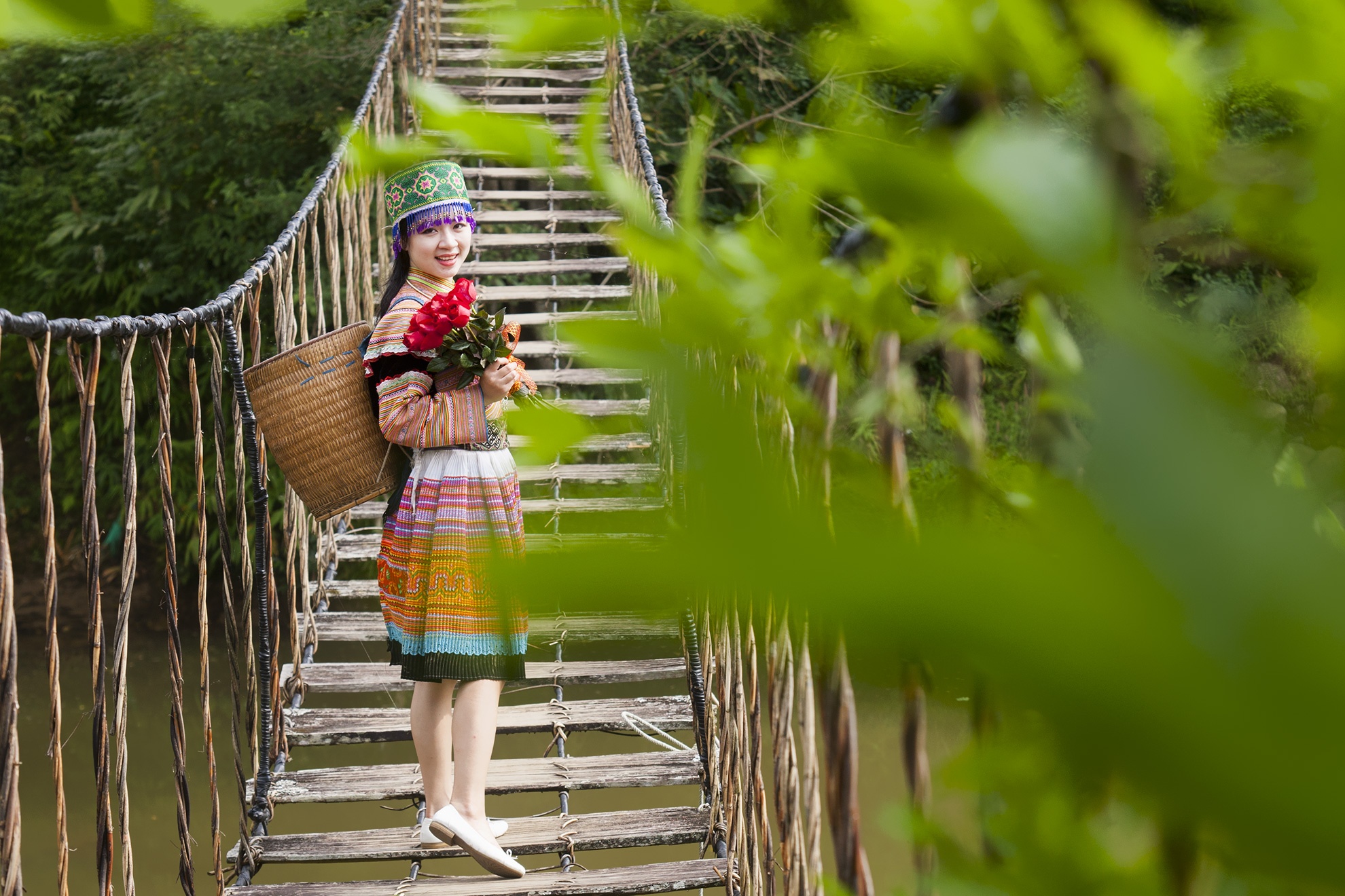 Sau màn cầu hôn lãng mạn, nữ phượt thủ hoá thân thành cô gái người Mông, tạo dáng chụp ảnh.
