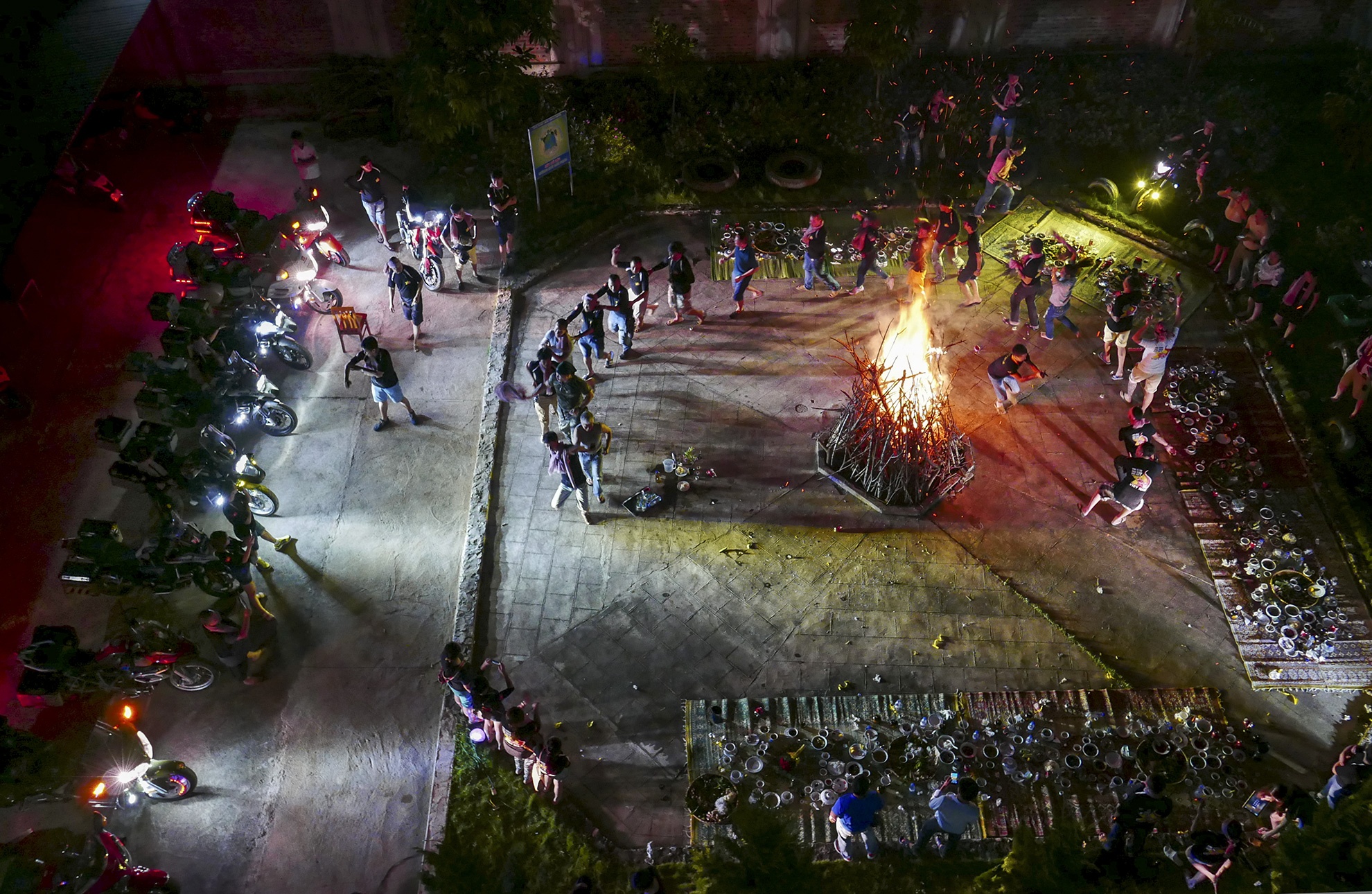 Ngay tại điểm dừng chân đầu tiên của chuyến đi Mộc Châu, chàng trai Đà Nẵng cùng một số anh em trong đoàn tổ chức buổi sinh hoạt tập thể với trò đốt lửa trại, nhảy múa.